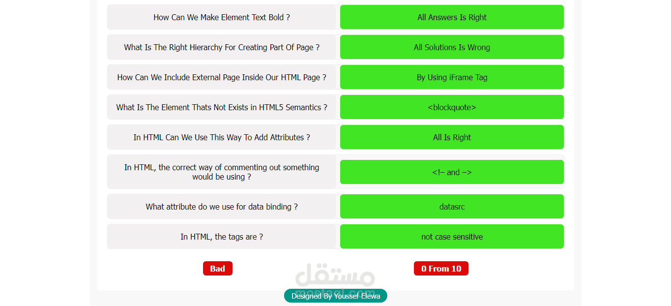 - عند الانتهاء من الاسئله تظهر لك الاجابات الصحيحه ومعها مستواك في اللغه المختارة.