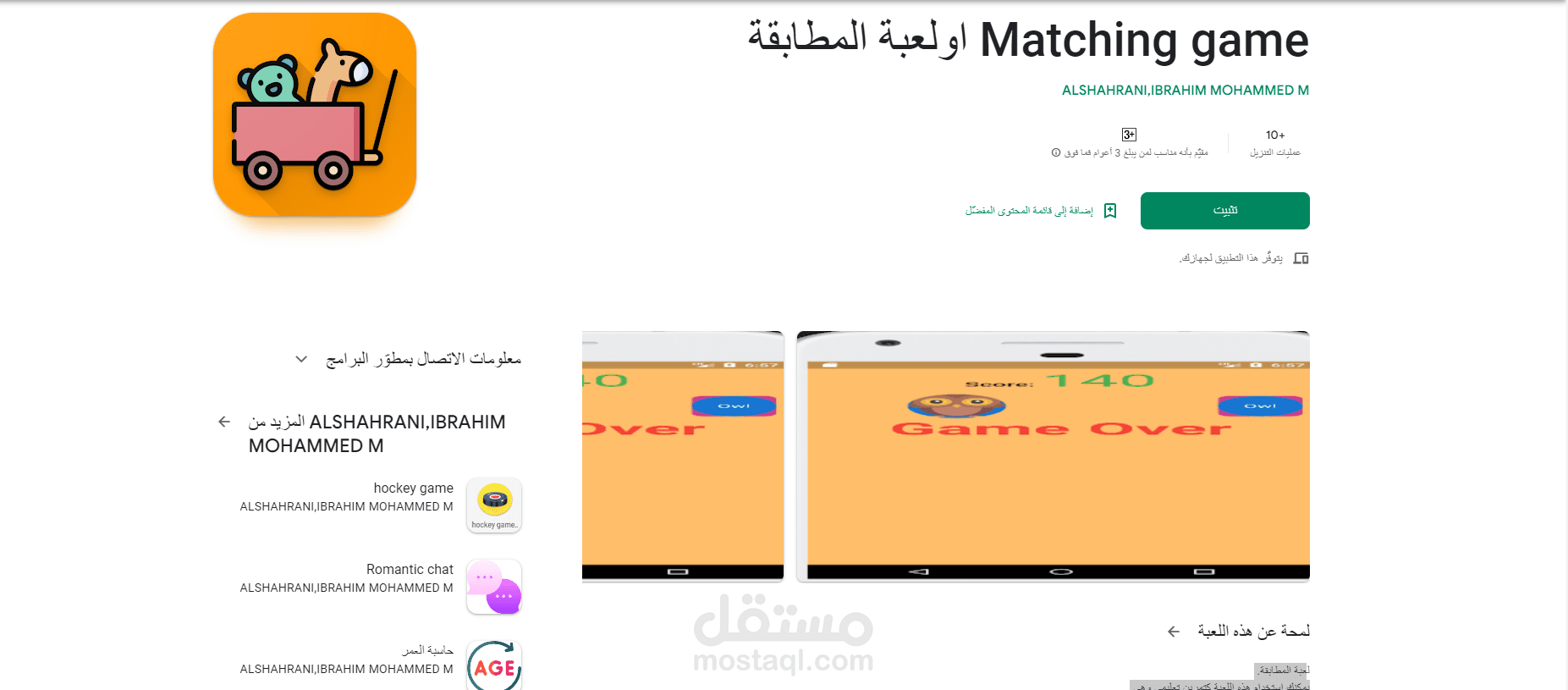 تعلم كيفية مطابقة صور الحيوانات أسماءهم ، تمكن للأطفال من تخطيط الأسماء وتسجيله للصورة ، وكلما اختار اجابه صحيحة تحسب له 10 نقاط ، واذا كانت خاطئة تخصم 5 نقاط
