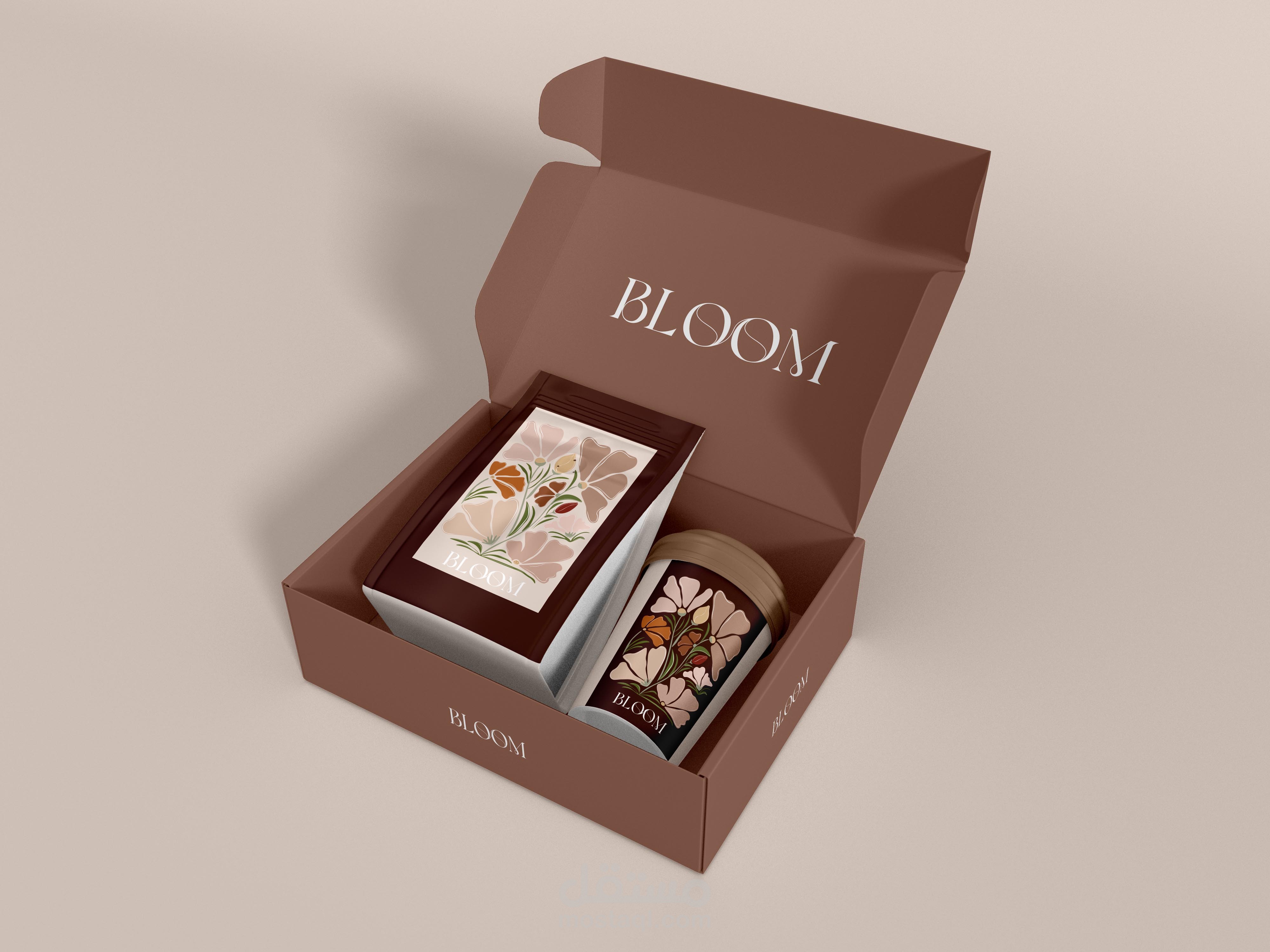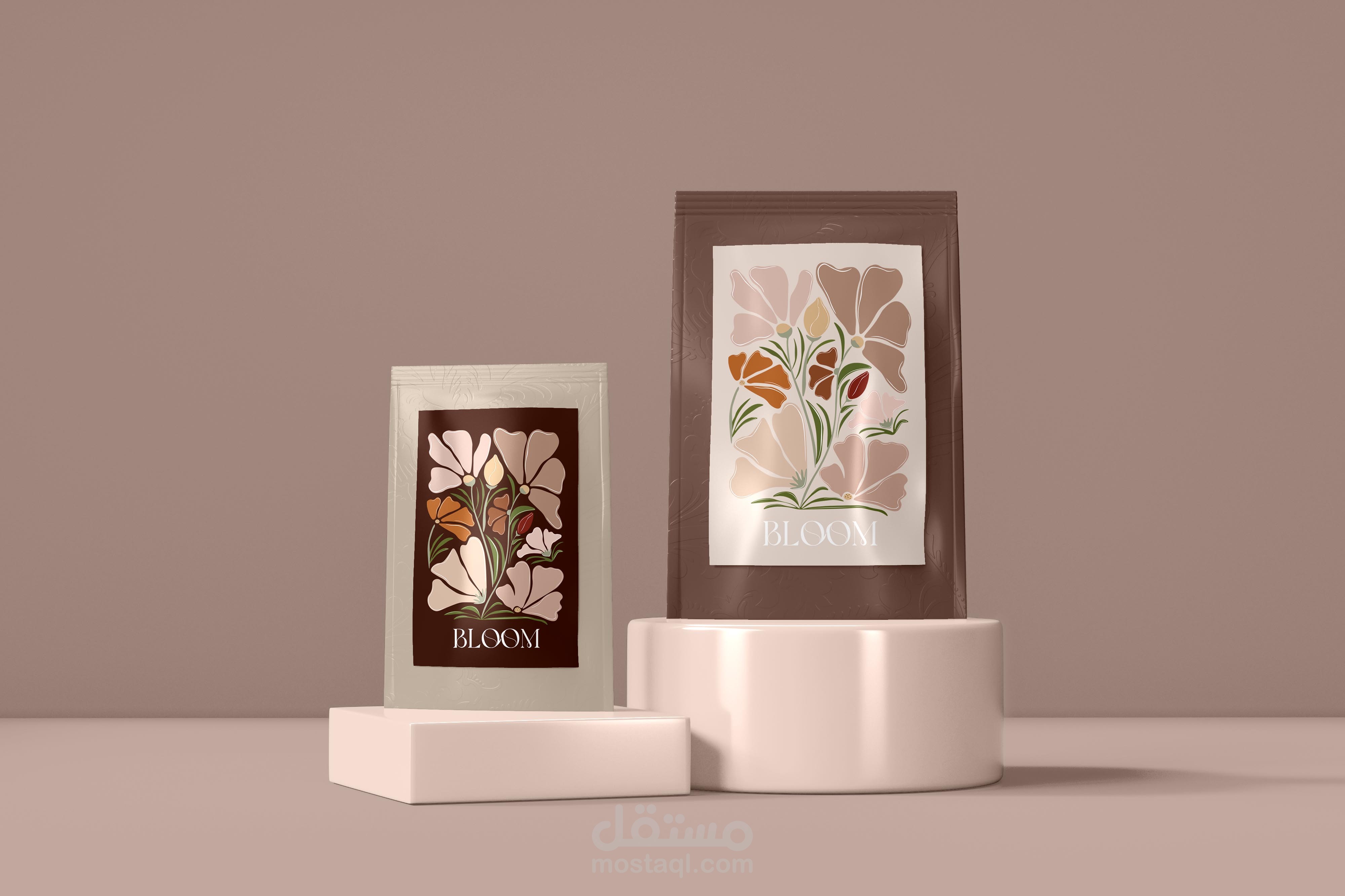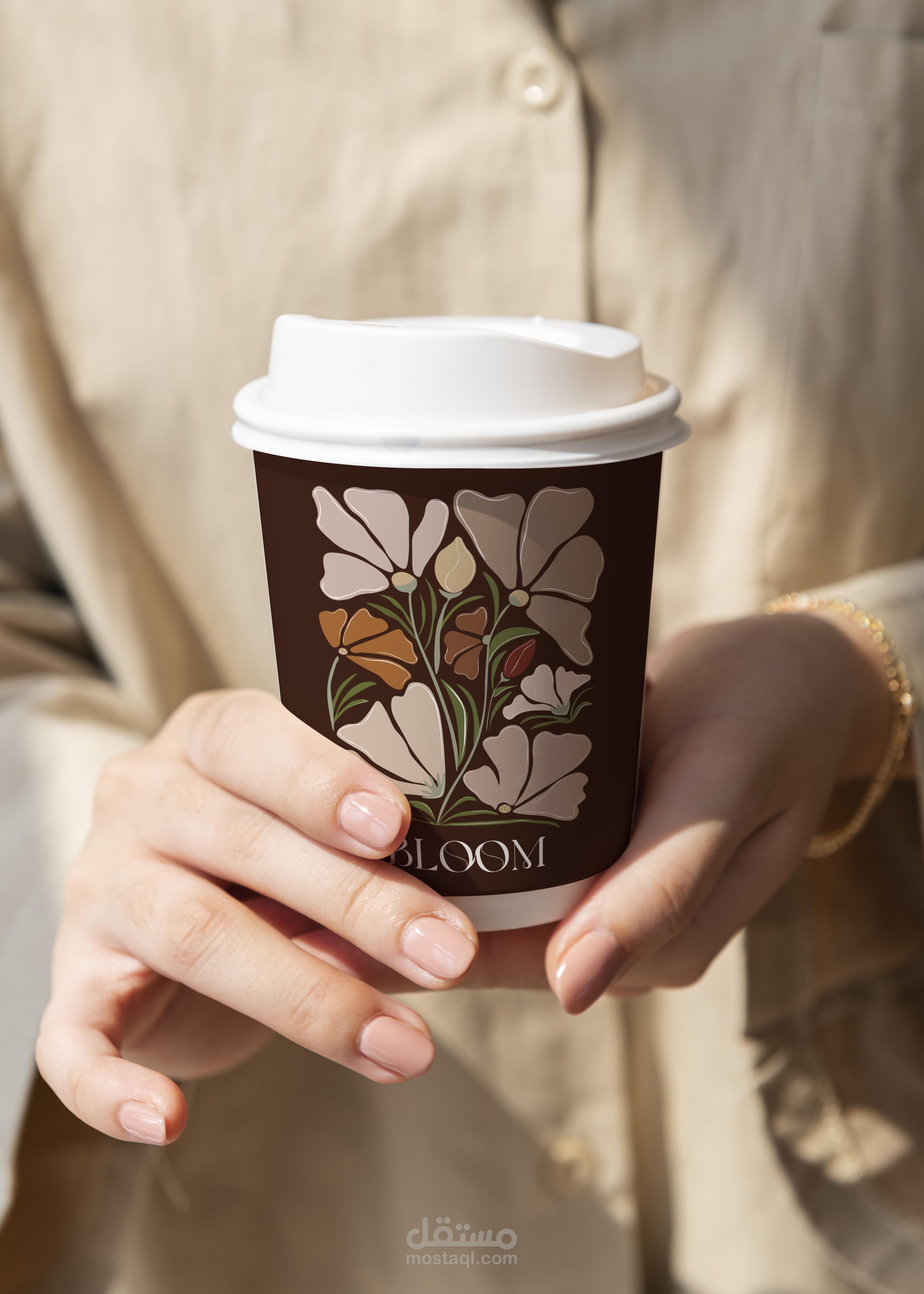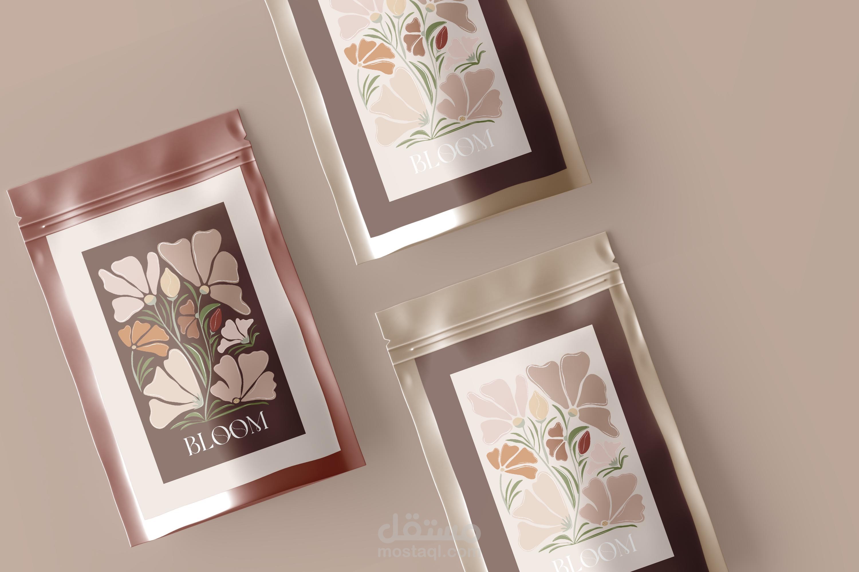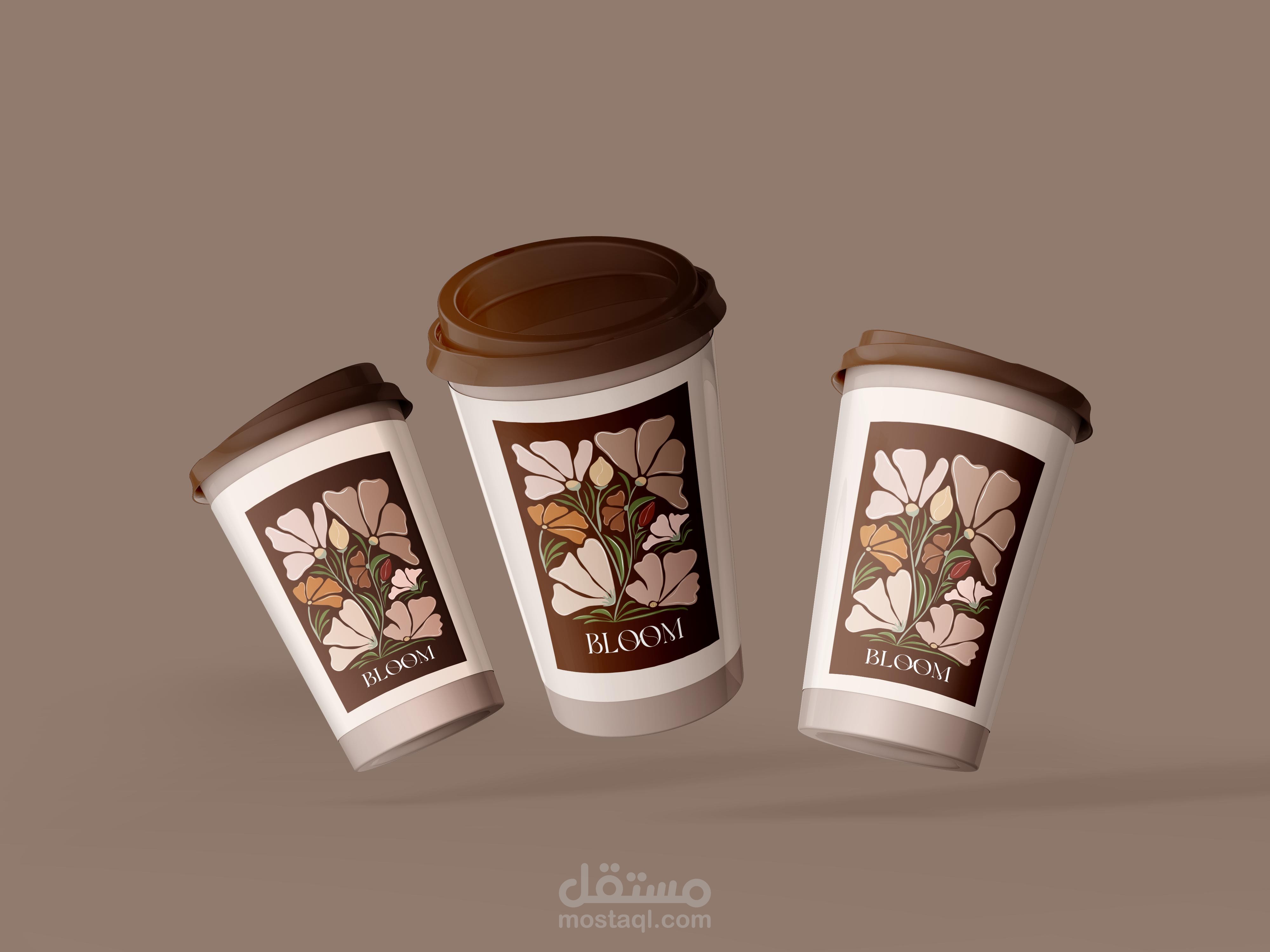 تصميم هوية تجارية وتصميم المنتجات لمقهى بلوم