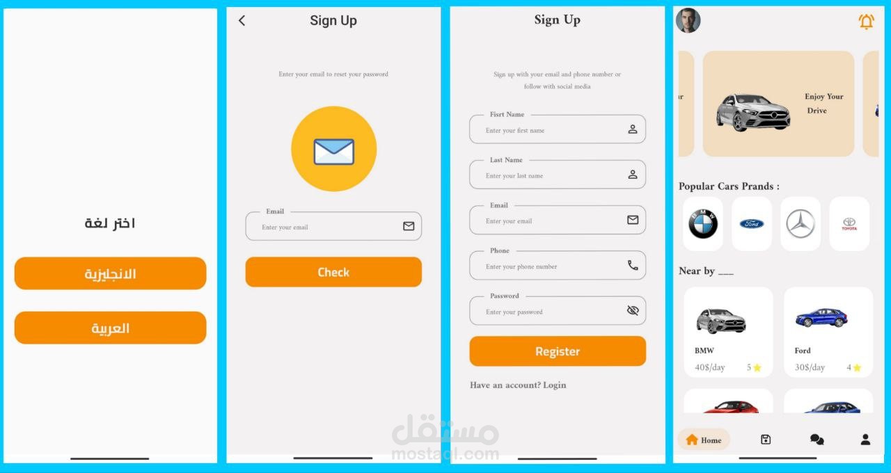 تطبيق لإستاجار السيارات