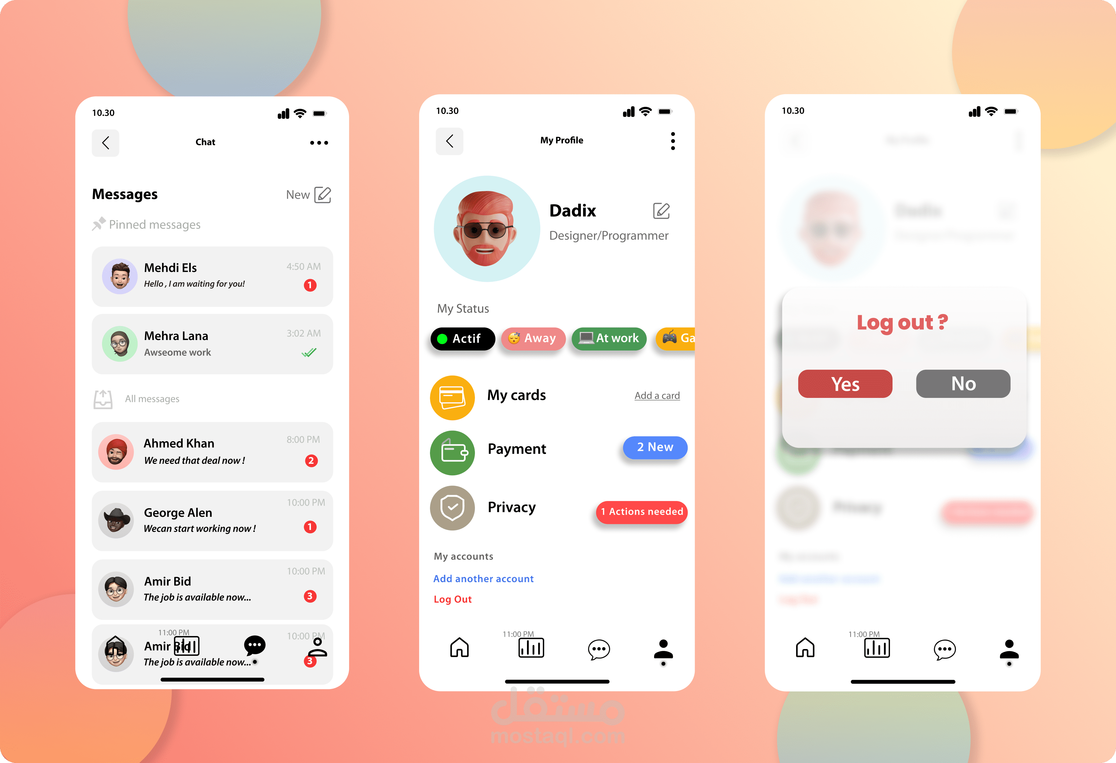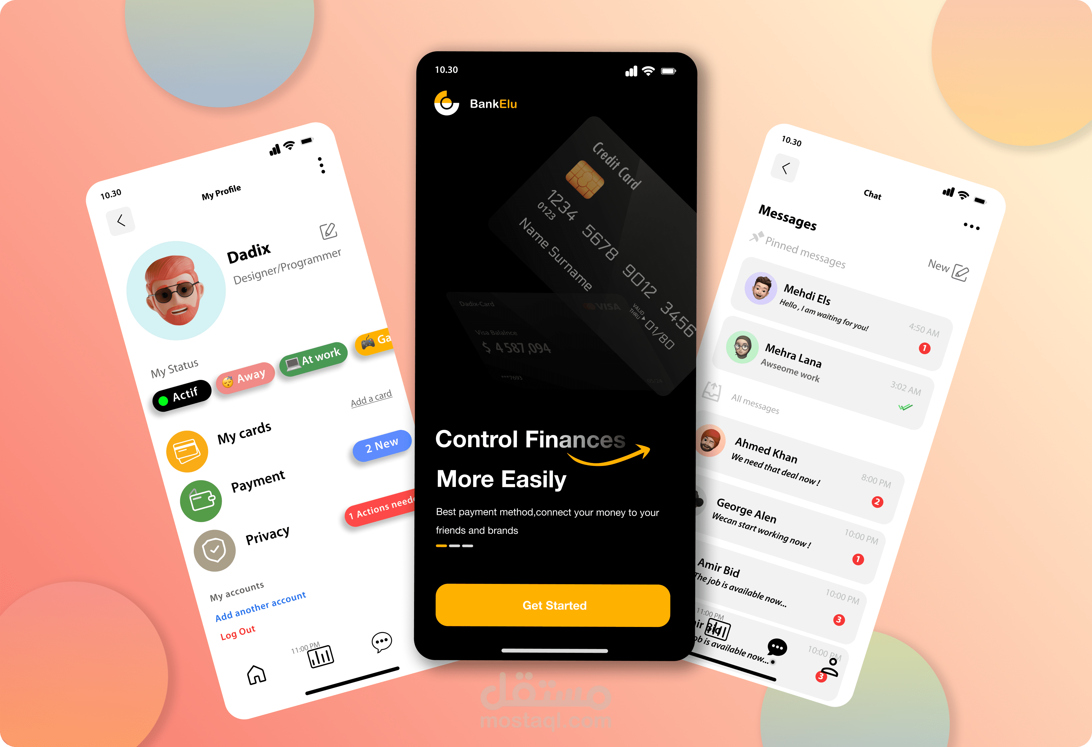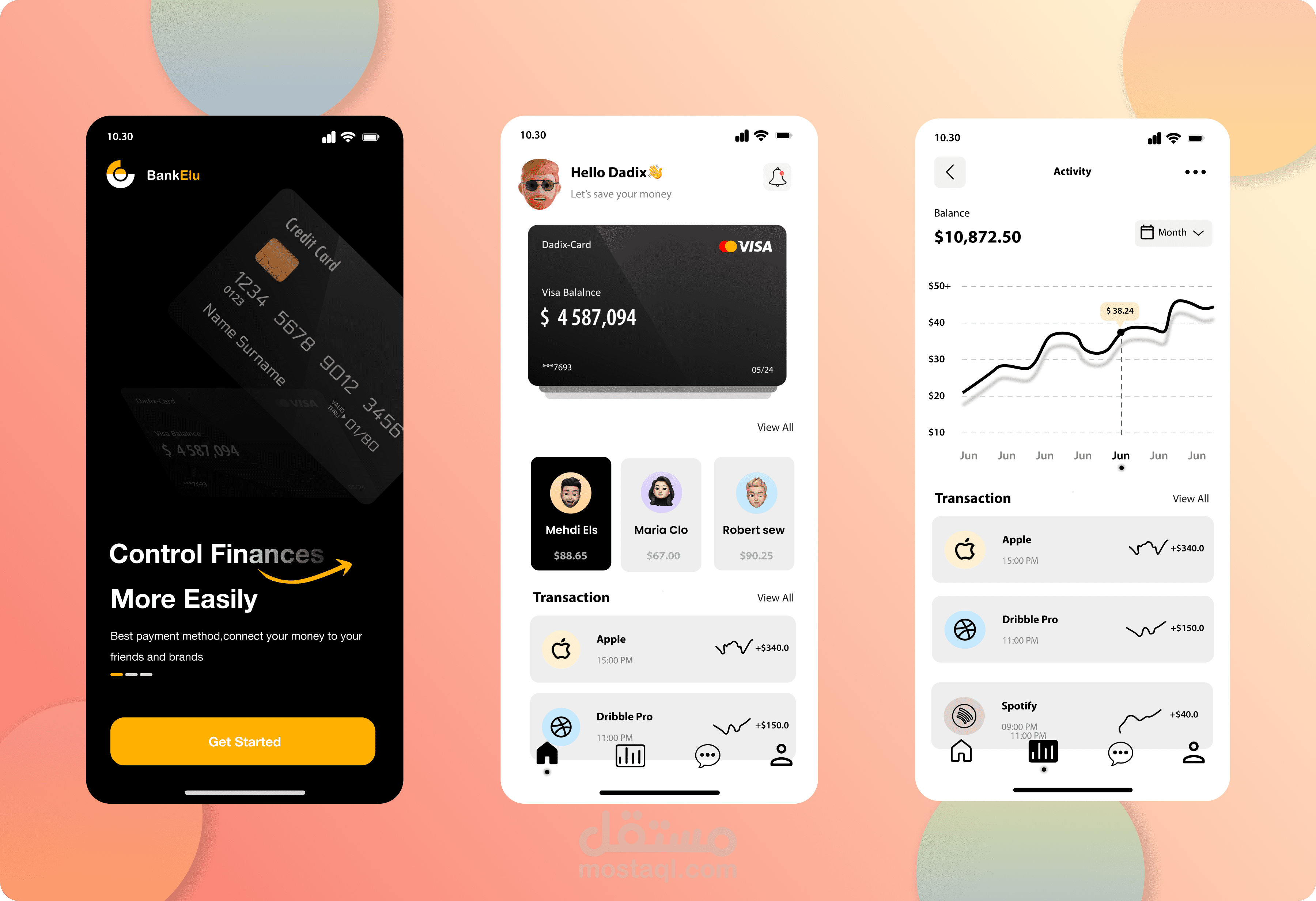 This is a UI design for a bank mobile application with the possibility of talking to many people within you list of friends or people to talk about the currencies