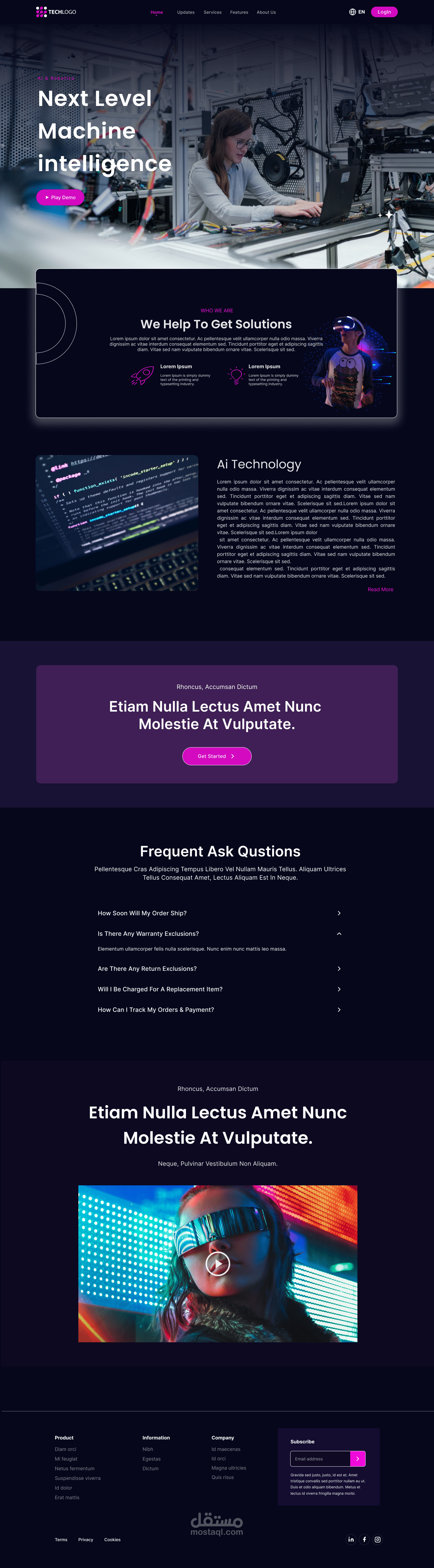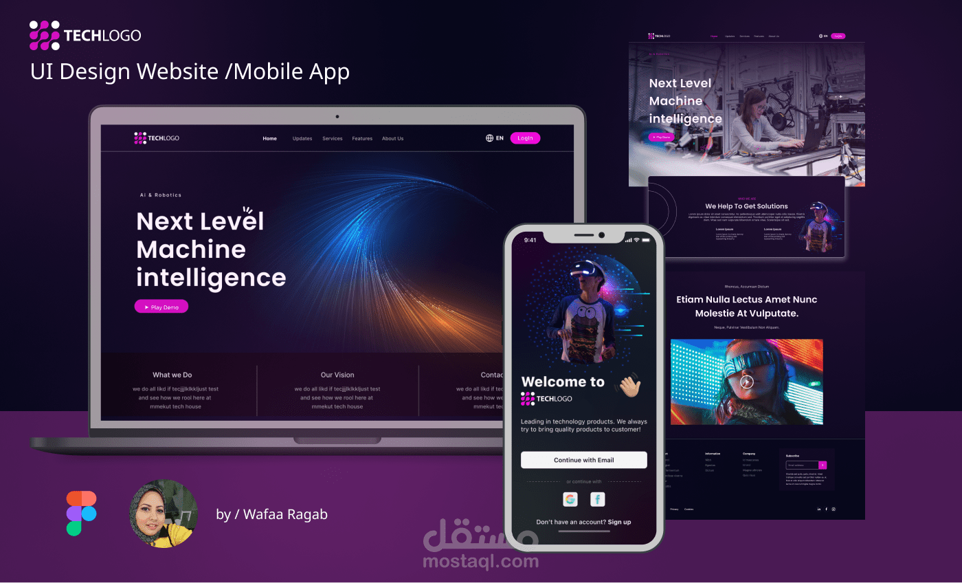تصميم صفحة الهبوط و واجهة الموبايل لشركة تكنولوجيا باستخدام فيجما