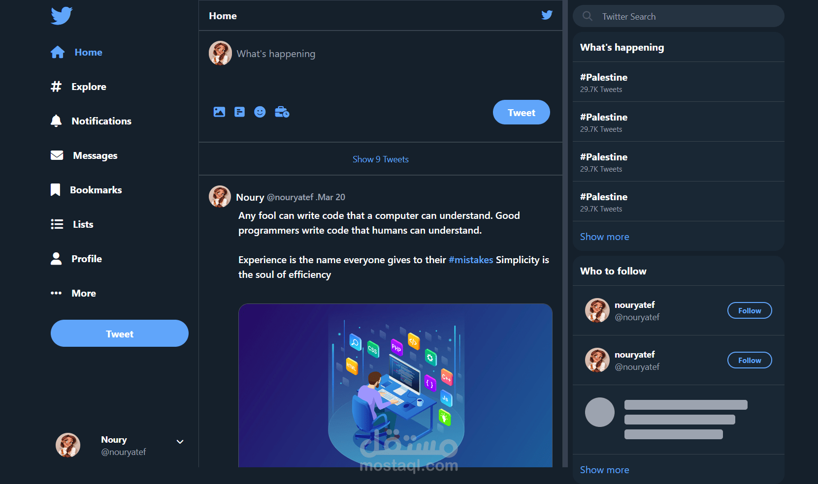 عمل clone لموقع تويتر باستخدام HTML CSS TAILWIND JS