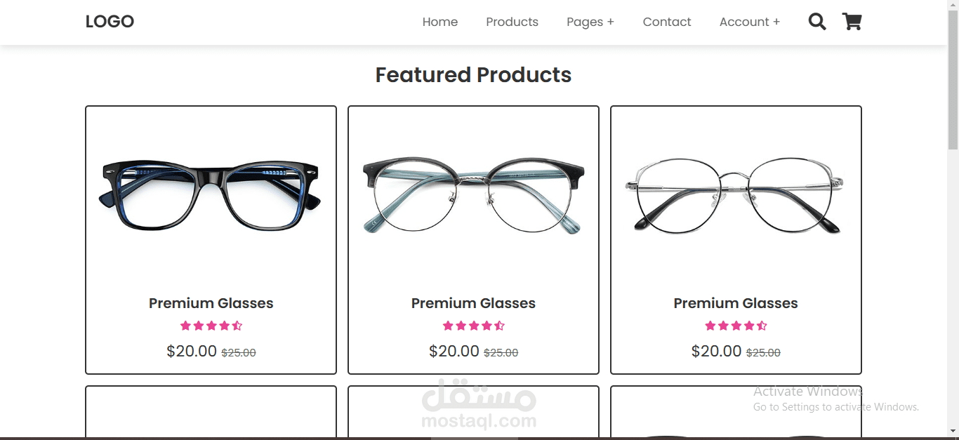 Glasses E-Commerce Website Design HTML / CSS / SASS / JavaScript