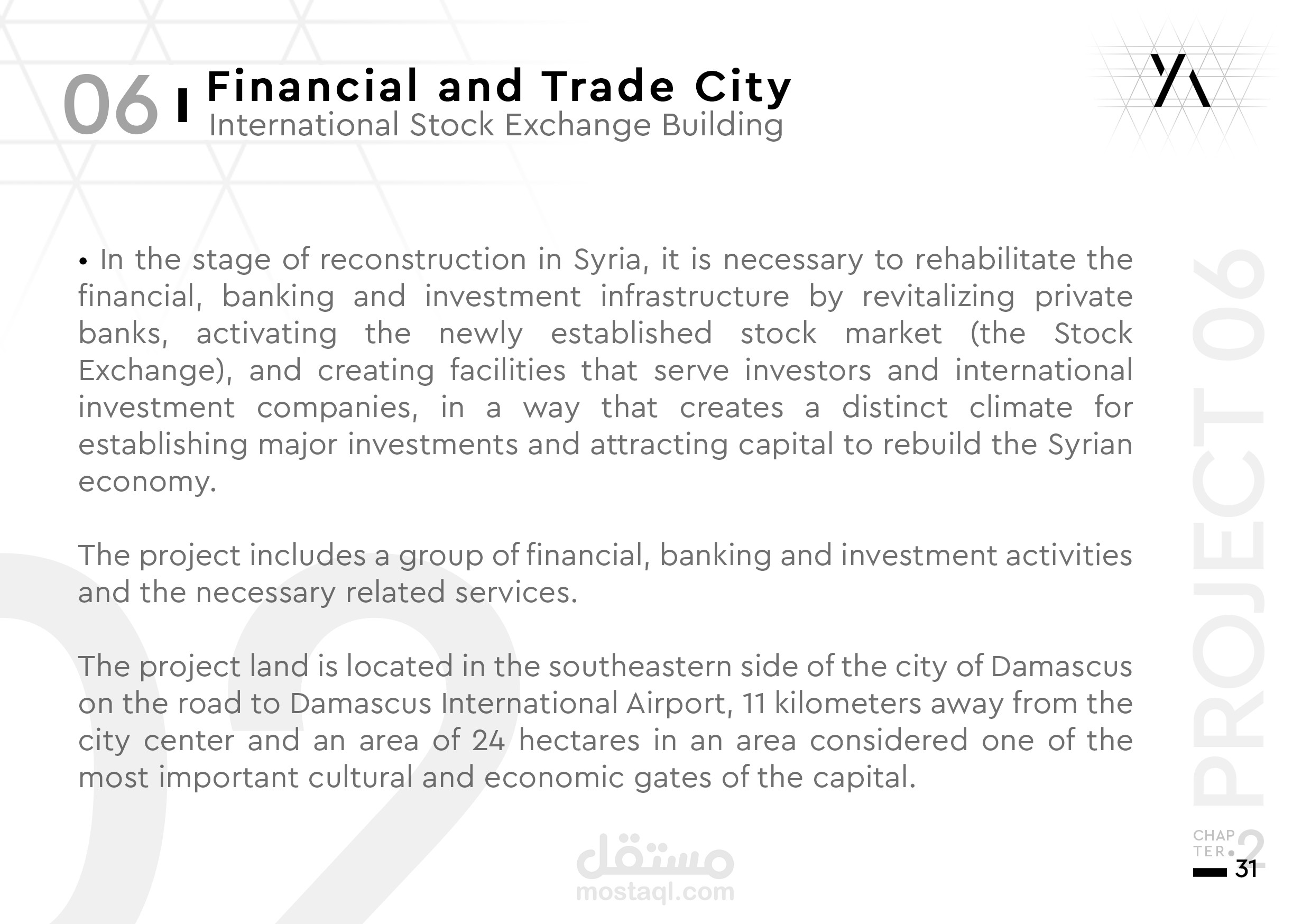 يضم المشروع مجموعة من الأنشطة المالية والمصرفية والاستثمارية وما يلزمها من خدمات.