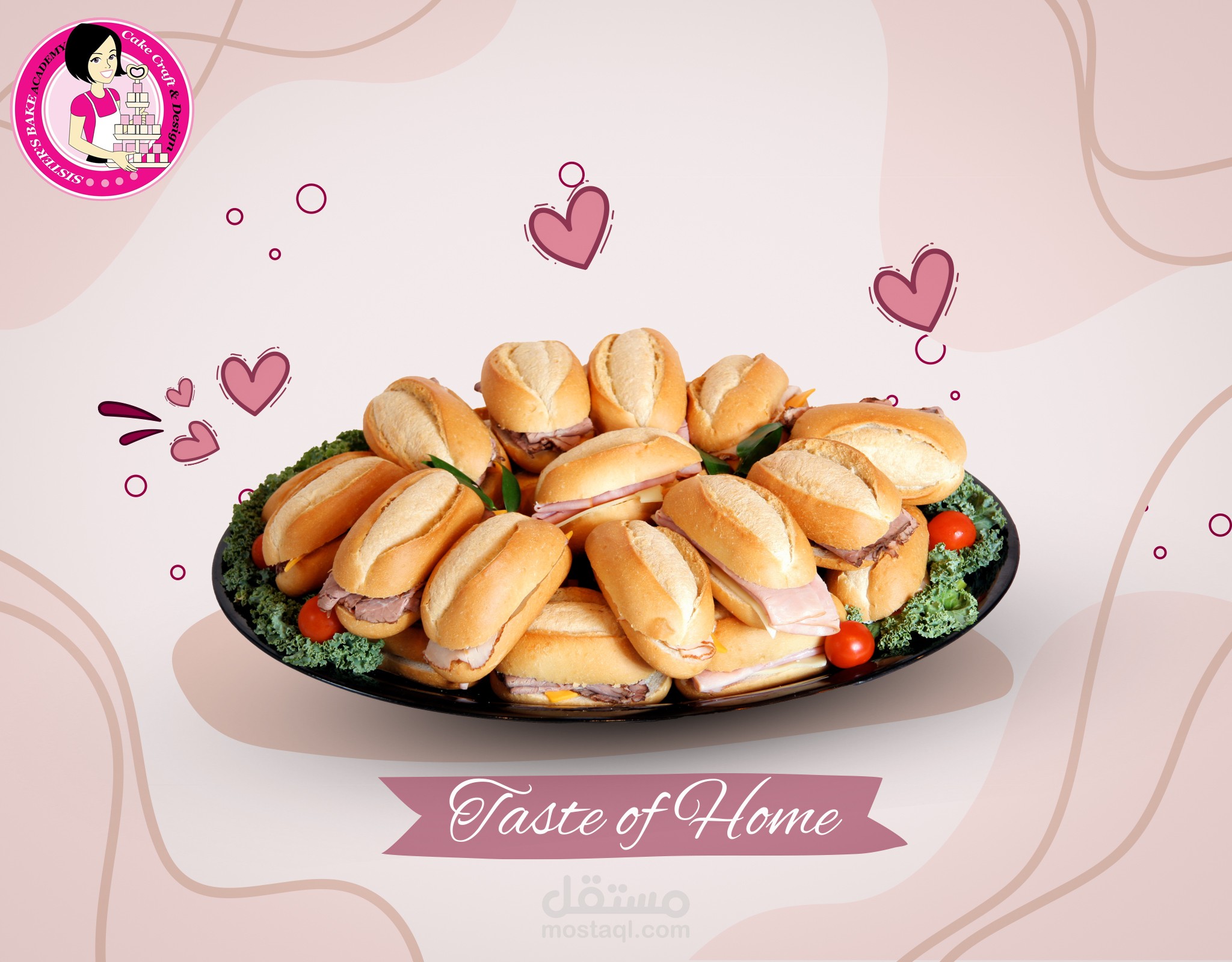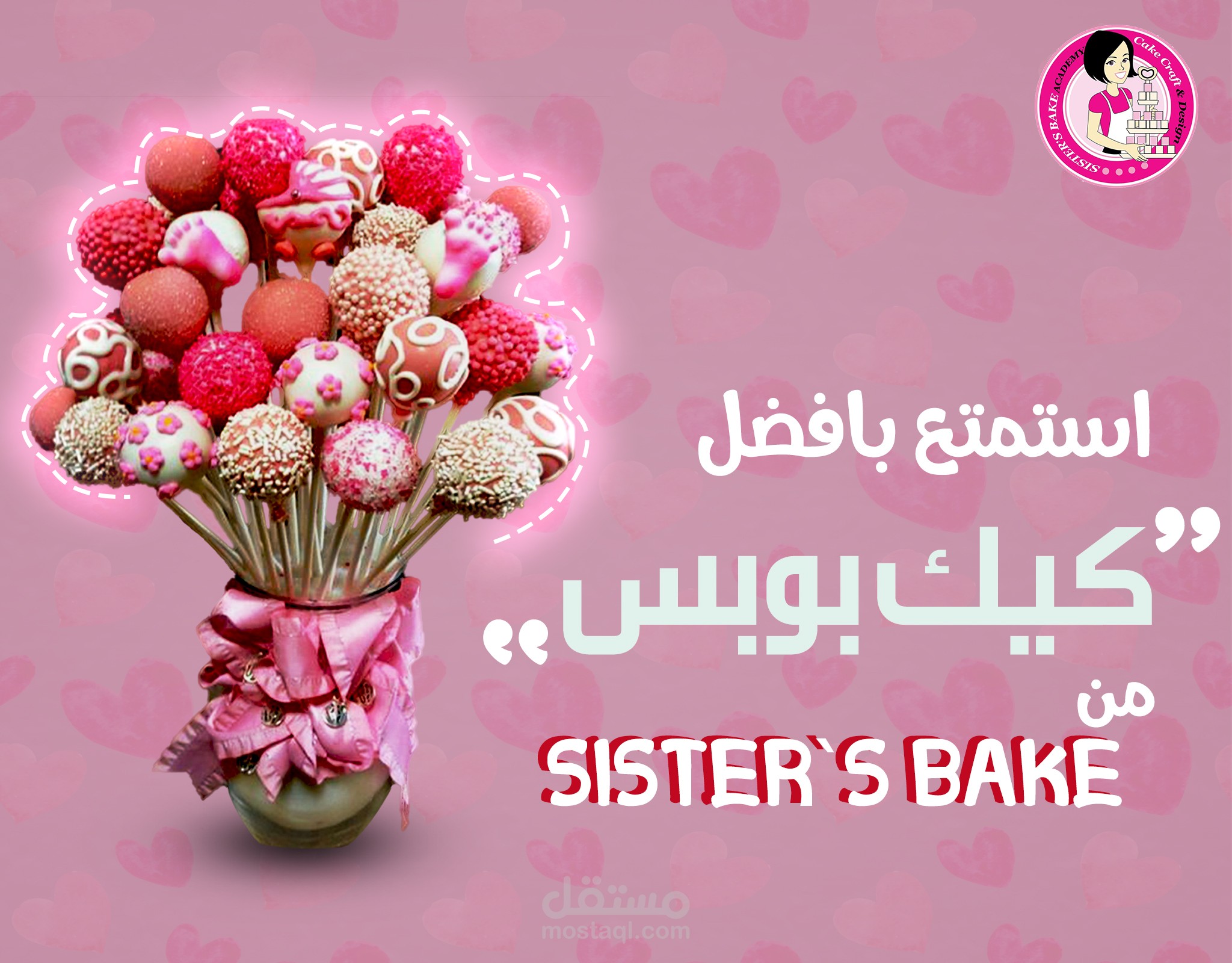 العناصر الإعلانية: تم تصميم عدة عناصر إعلانية لـ "Sister's Bake للحلويات" بما في ذلك بروشور، وبانرات إعلانية، ومنشورات على وسائل التواصل الاجتماعي. تم استخدام الألوان والأشكال الموحدة لخلق تعرف مميز للعلامة التجارية.