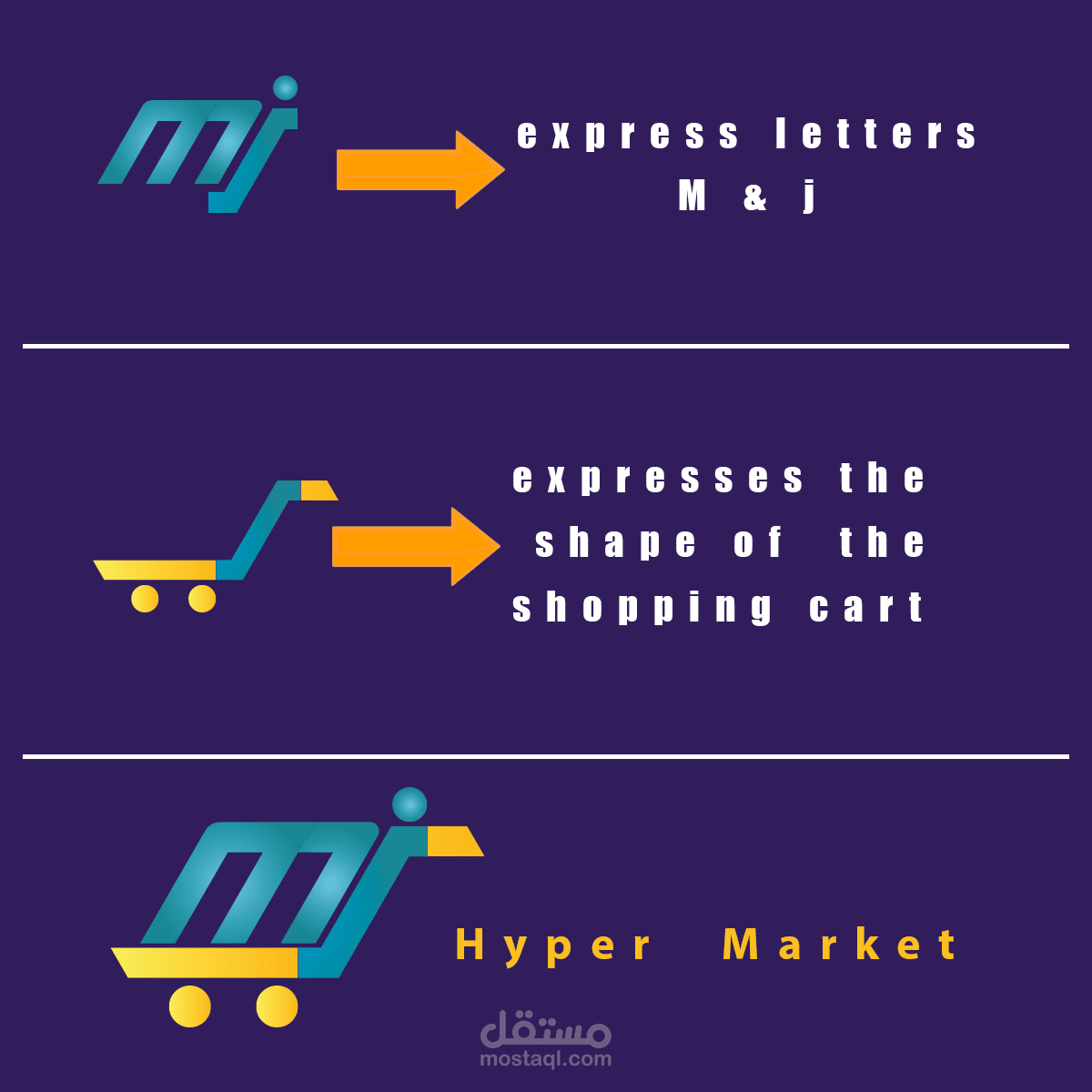 لوجو احترافي لمحل هايبر ماركت اسمه MJ