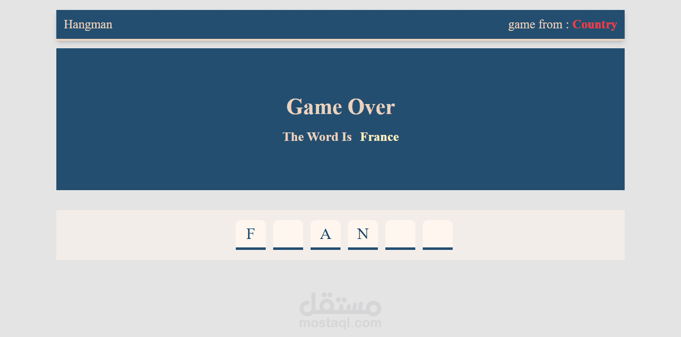 لعبه تقوم علي توقع الكلمه من خلال عدد الاحرف و التجربه