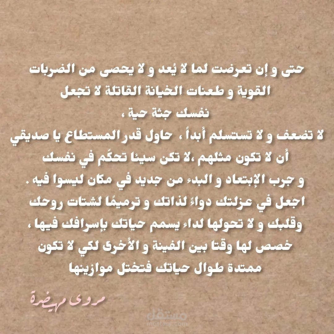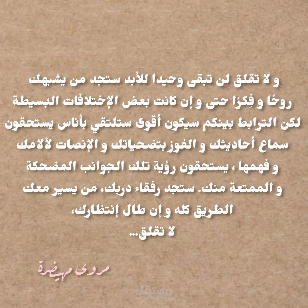 معكم الكاتبة مروى أقوم بكتابة مقالات إبداعية متعددة بخصوص مواضيع شتى بالإضافة إلى صناعة محتوى كتابي إحترافي ، و لدي خبرة جيدة في مجال الكتابة و الأساليب الراقية لتوصيل المعلومة إلى المتلقي.