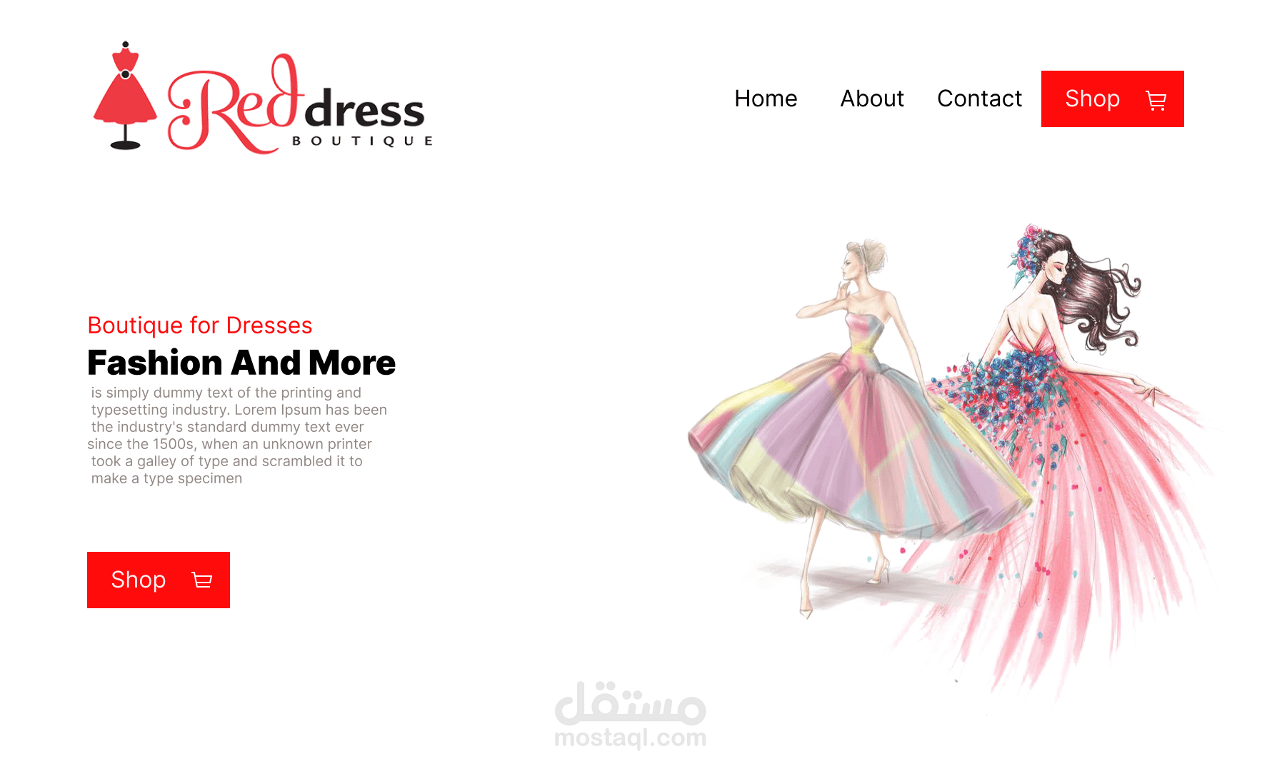 صفحة رئيسية لمحل ألبسة