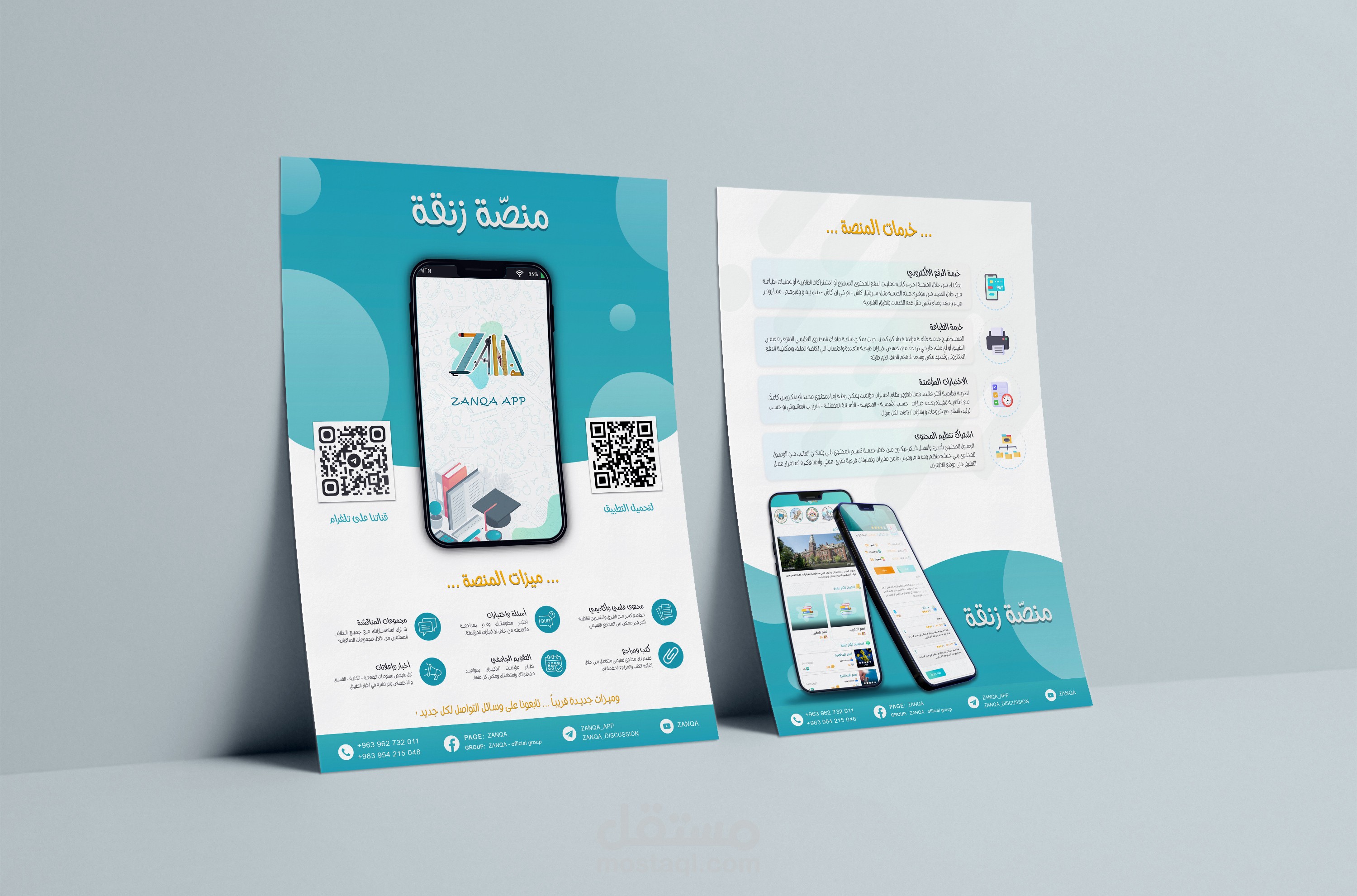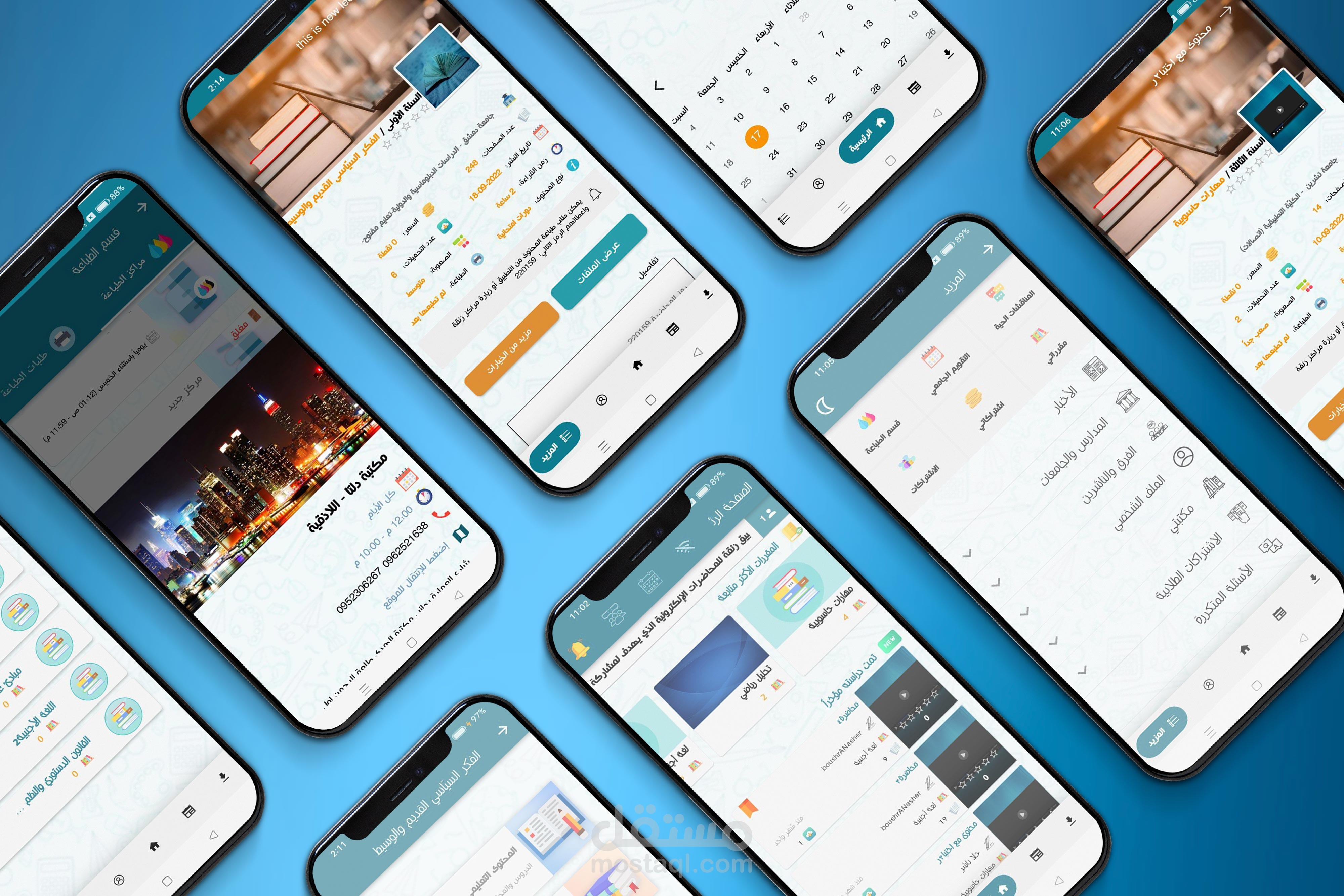 تصميم هوية بصرية ومطبوعات وواجهات المستخدم لتطبيقي الهاتف والويب لمؤسسة تعليمية.