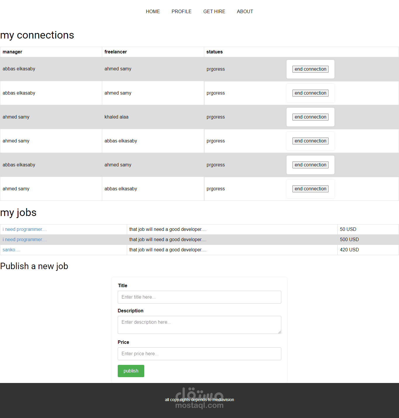 هذا الموقع من خلاله يمكنك تعيين مستقليين فى كثير من المجالات بكل سهولة وتم تفعيل اطار php خاص على عكس الاطارات المشهورة مثل laravel and vanilla