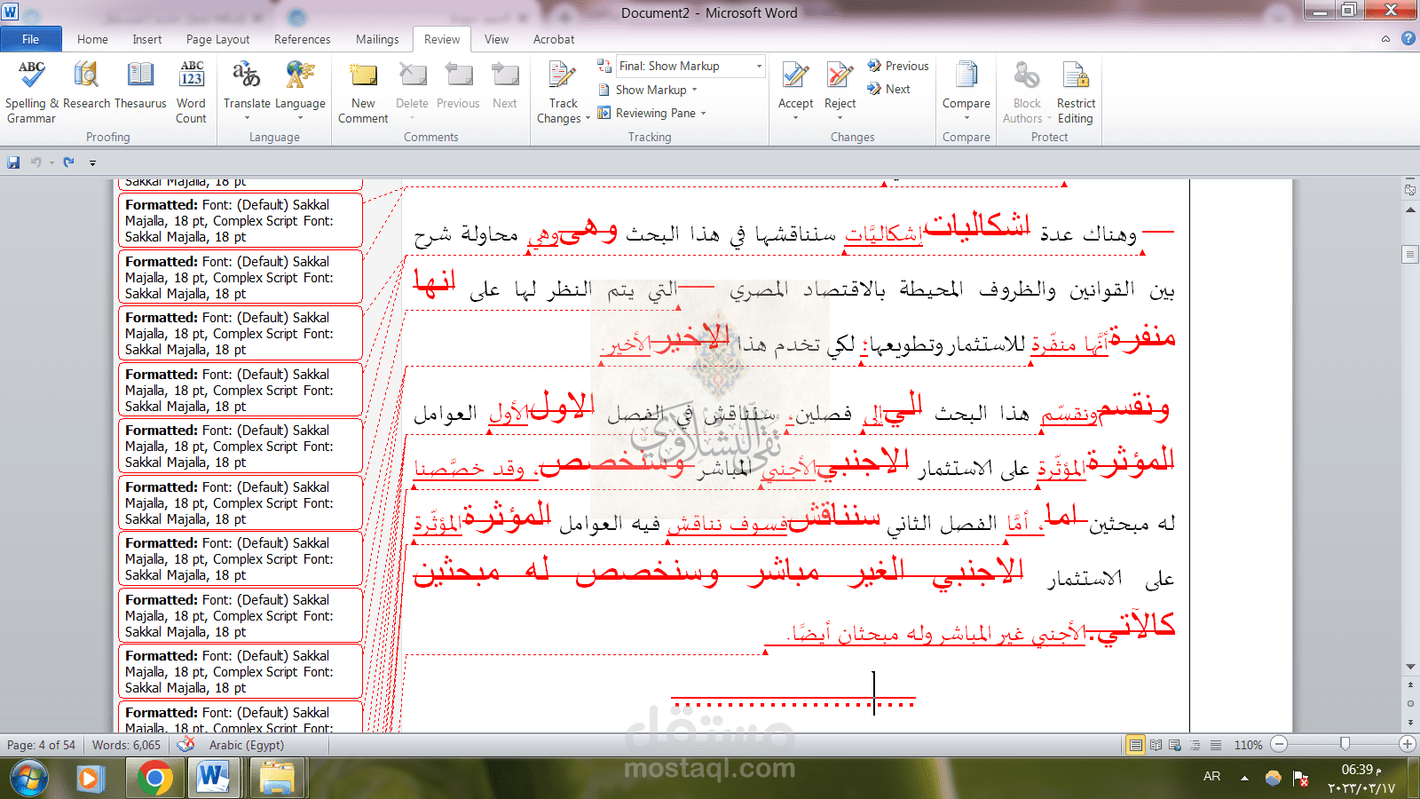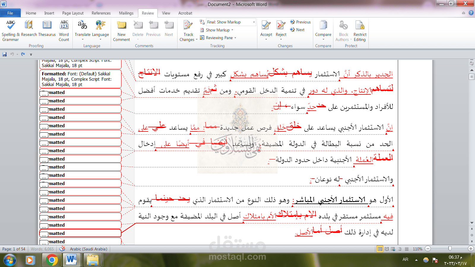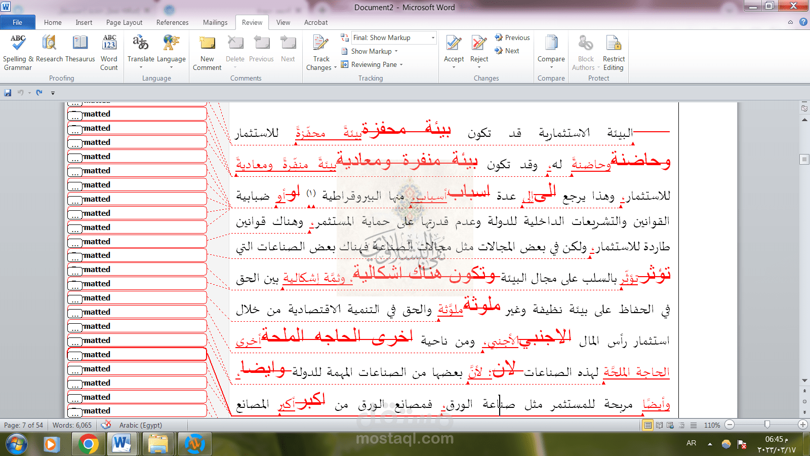 - ملف يوضح التغييرات كاملة باللون الأحمر مع الملف بعد مراجعته مرتين.