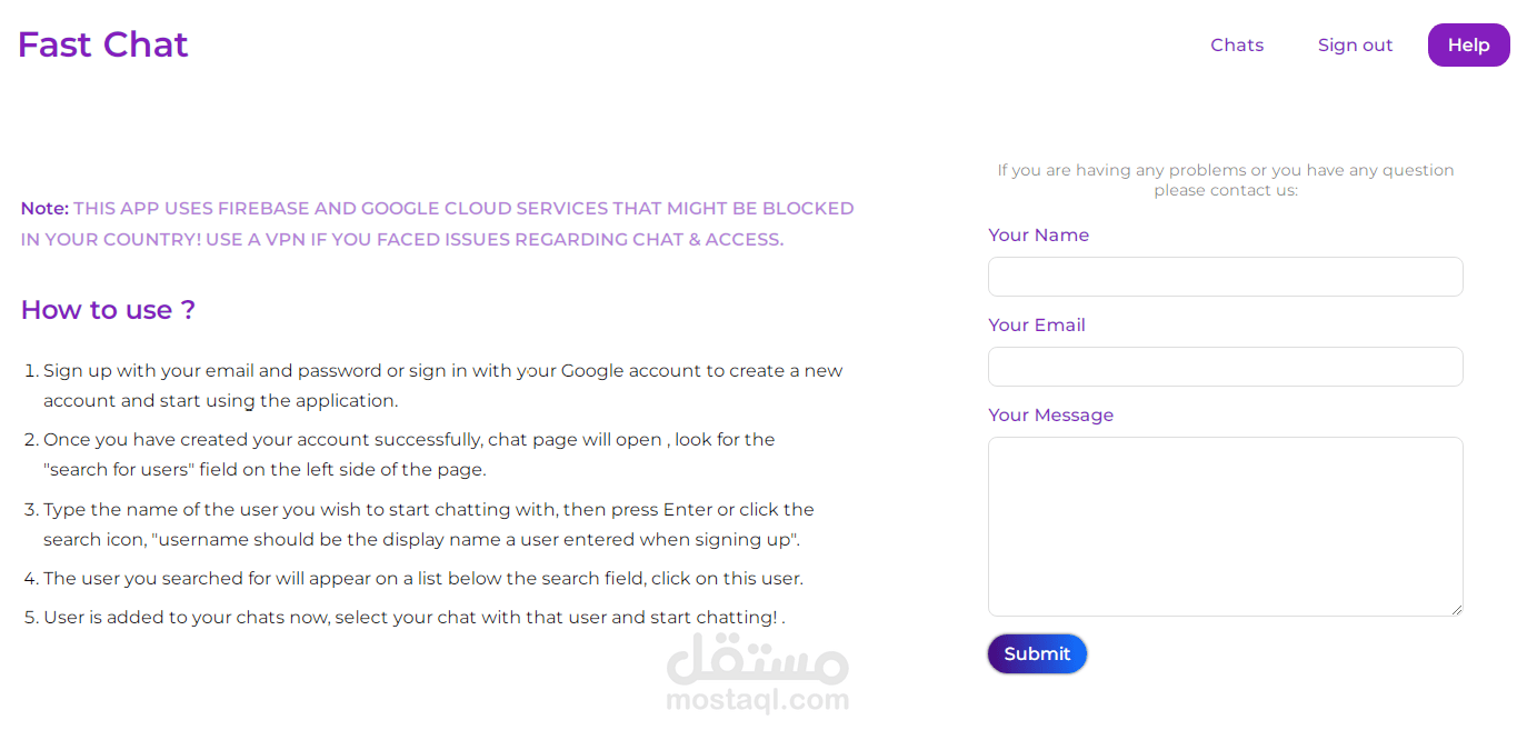 تطبيق ويب Fast chat , للتشات والمحادثات الفورية Real time chatting