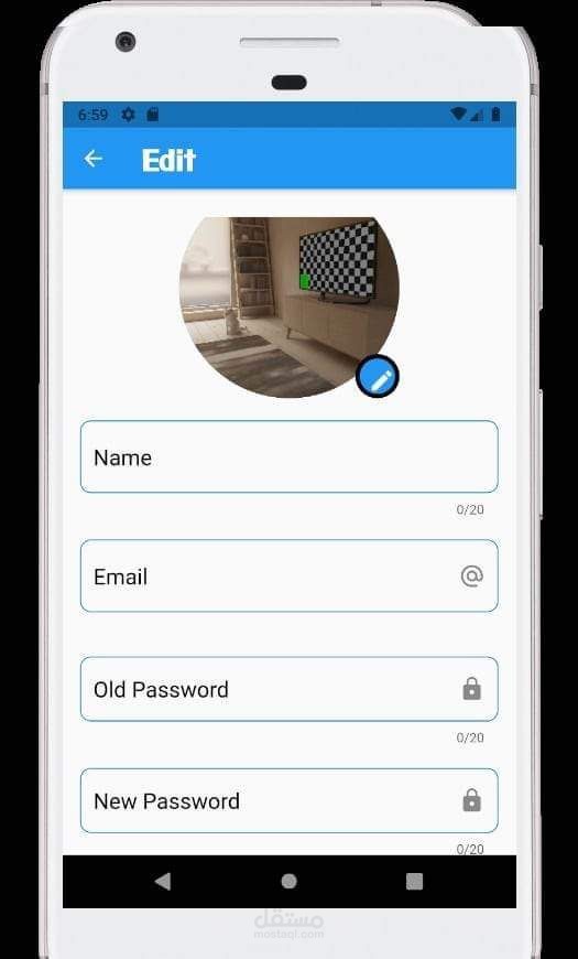 -اذا كان عامل يتم الدخول الي صفحته وتظهر ايقونة خاصة بالاشعارات يكون فيها اذا ما تم طلبه في اي عمل ام لا وهناك زر لتعديل الملف الشخصي