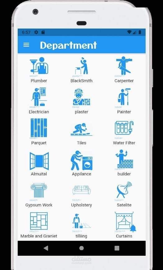 -اذا كان عميل تظهر الاقسام الموجودة في التطبيق عند الدخول الي قسم معين يتم وضع العمال كاكثر العمال الحاصلين علي تقييم