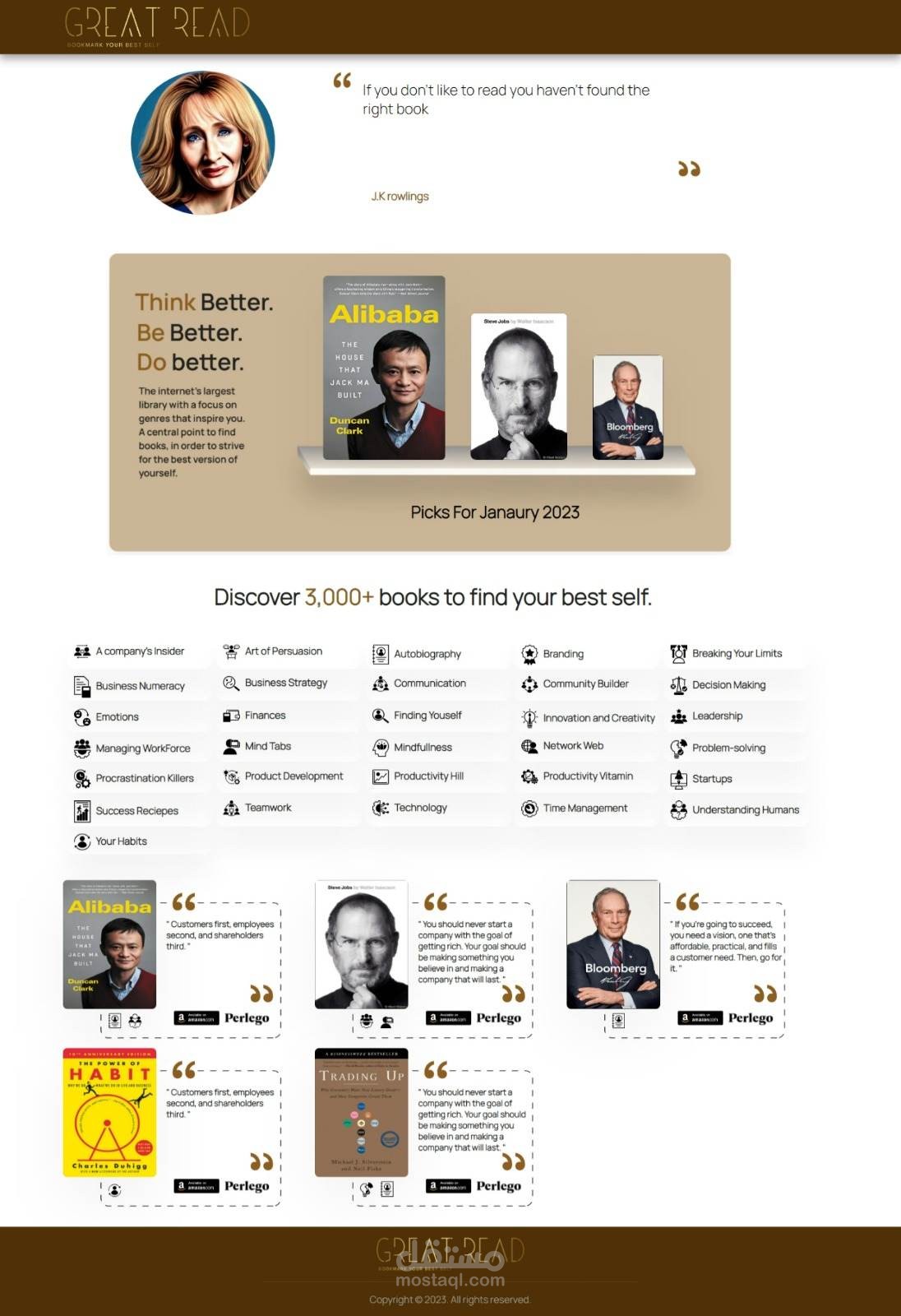 وايضا اختيار الاقتباسات وأفضل الكتب التي ستظهر في الواجهة الأمامية.