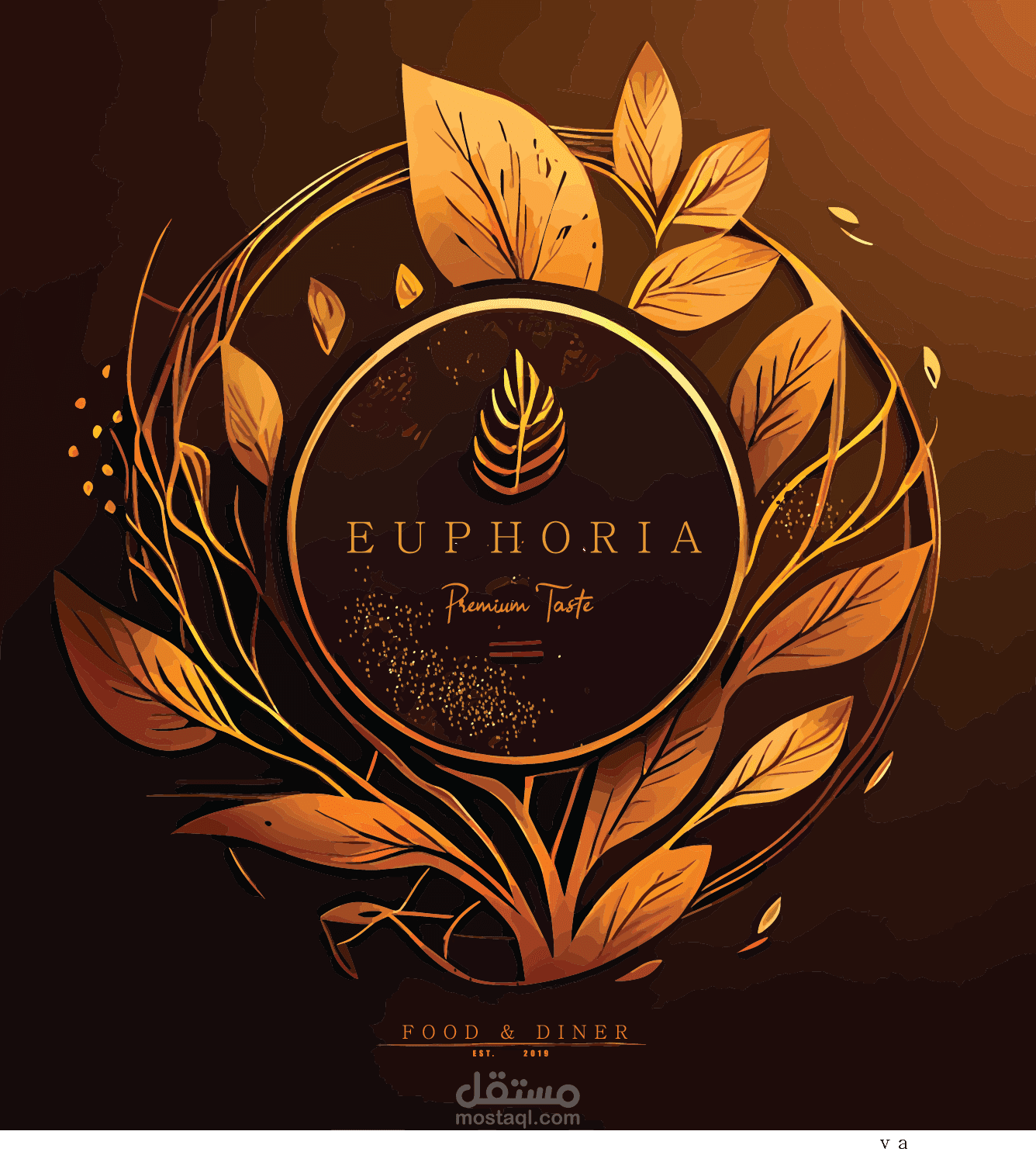 أراد عميلي شعارًا بسيطًا جدًا لمطعم يبدو أنه فاخر ويشتمل علي مساحة واسعة مؤسسه بتصميم فاخر ، والذي يبدو غير مناسب لهذا الحدث الأسمى، وأقترحت جعله أنيقًا ومتميزًا، وذلك من خلال رسم توضيحي فني بلمسة من اضافات الطبيعه مع الحفاظ ع اللون الذهبي واللوب البني الذي يعطي لمسه الجوده