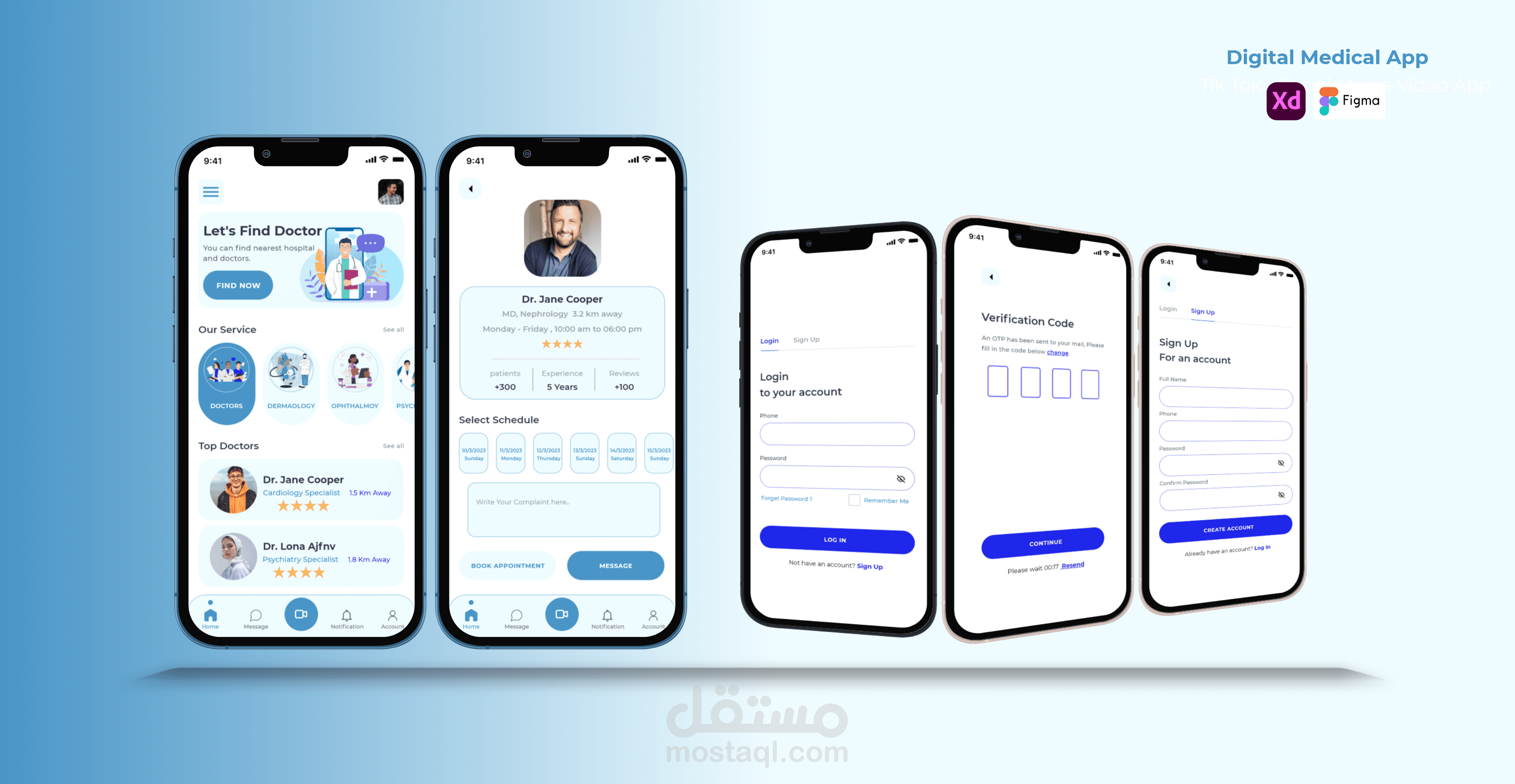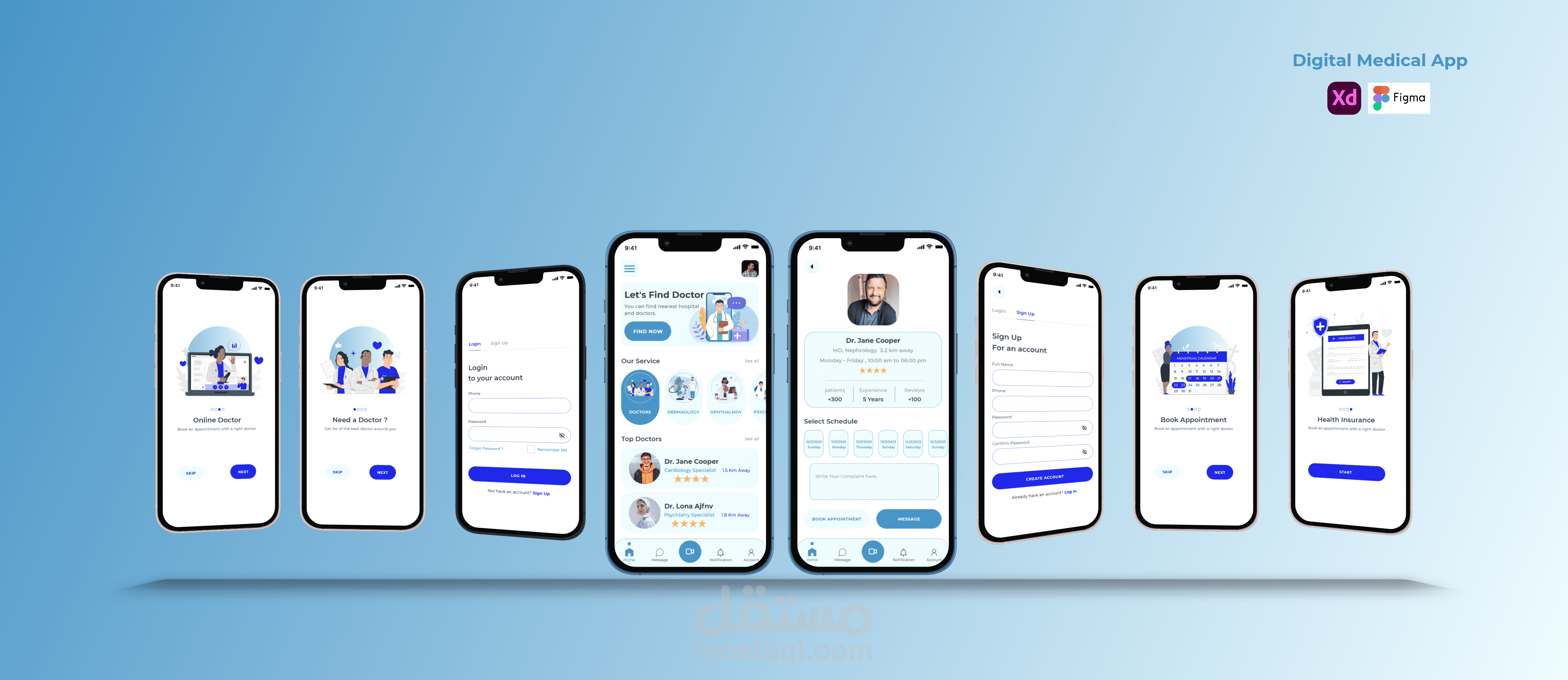 Digital Medical App UI Design عن طريق برامج التصميم مثل :