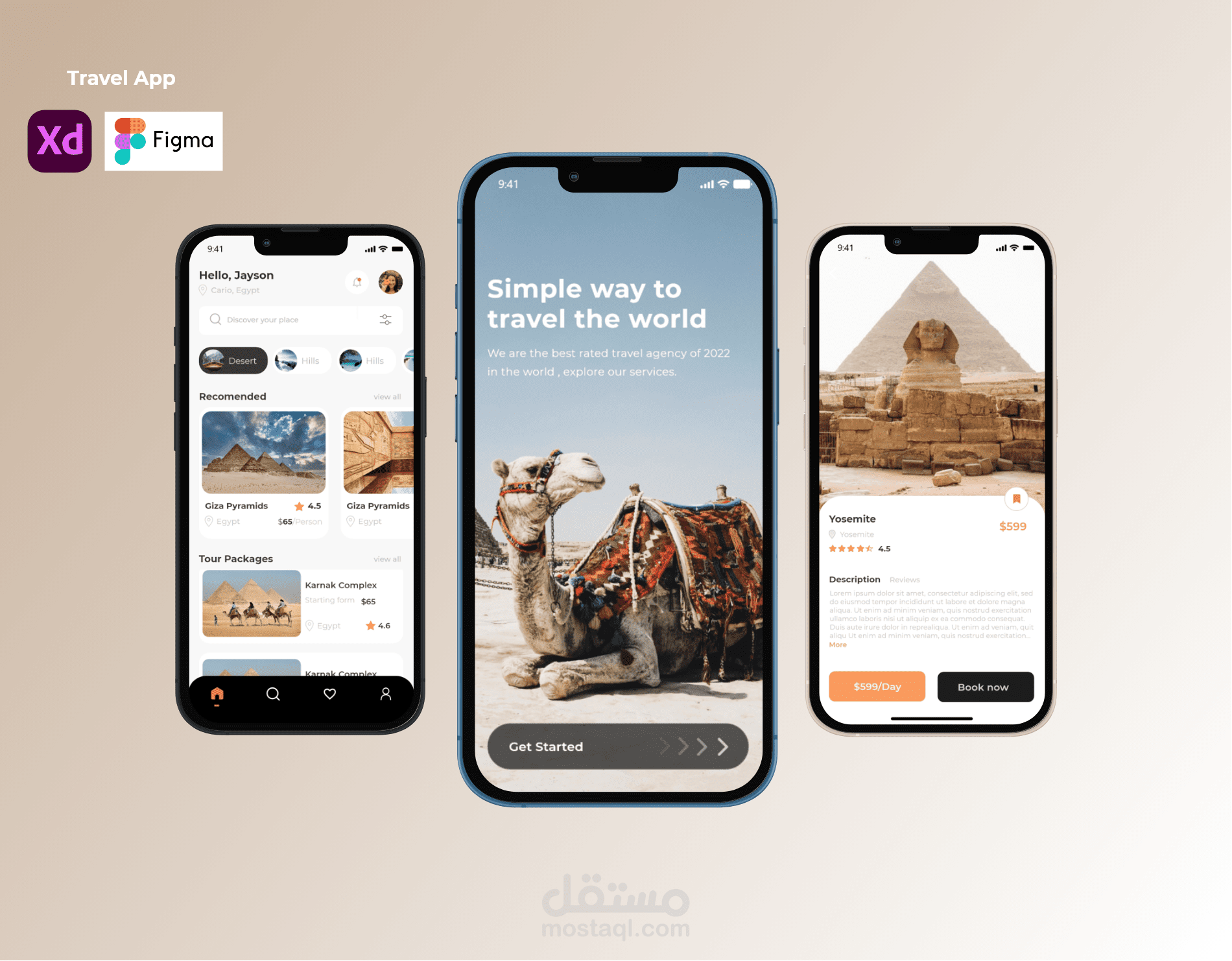 Travel App UI Design عن طريق برامج التصميم مثل :