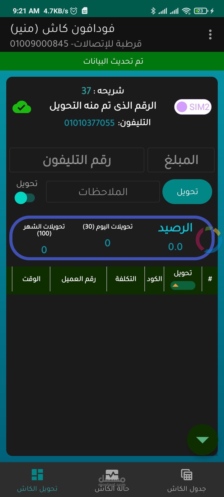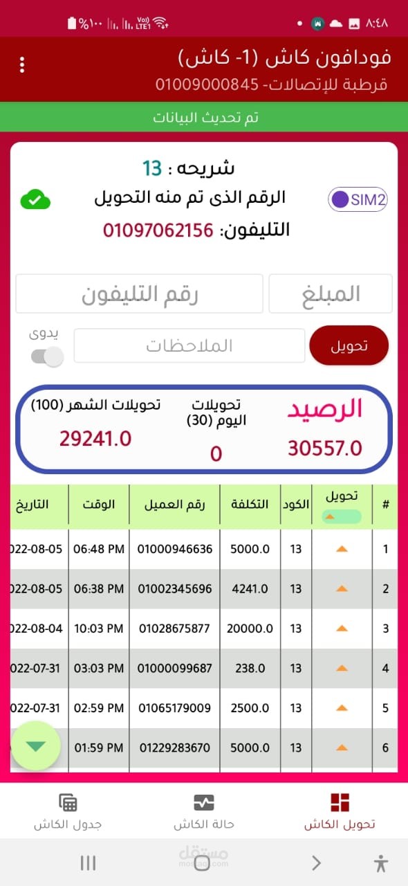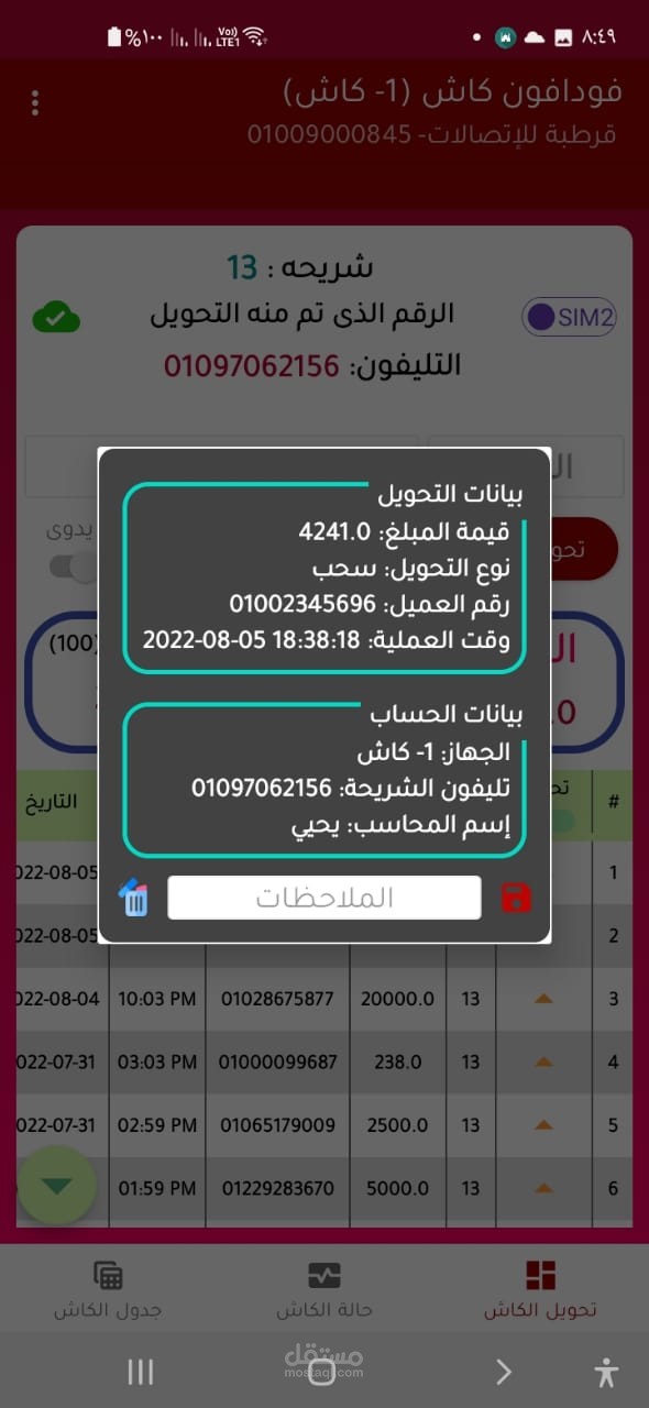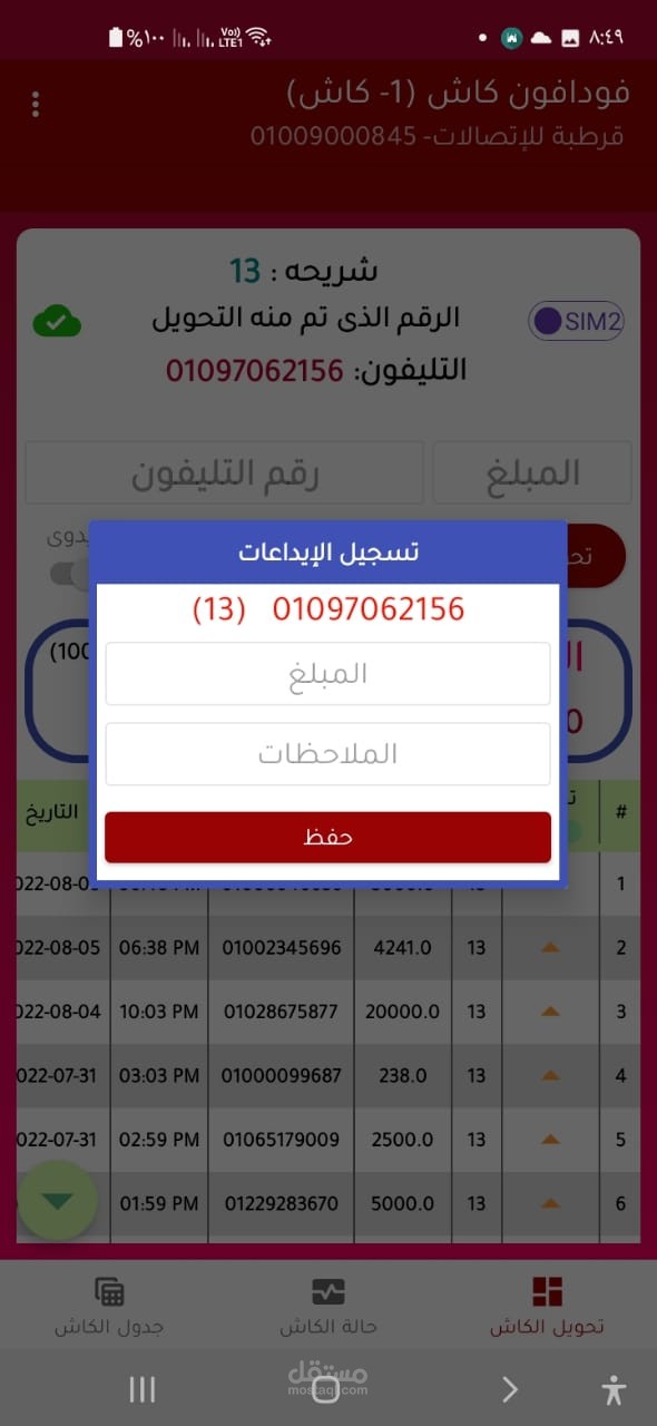 السماح للمستخدمين بإرسال واستقبال المعاملات المالية باستخدام تطبيق واجهة سهل الاستخدام لمحفظة Vodafone Cash، واسترداد المعاملات باستخدام نظام يدير تلك المعاملات. يتم ذلك عن طريق تصميم تطبيق واجهة سهل الاستخدام يسمح للمستخدمين بإرسال واستقبال المعاملات المالية بسهولة، وذلك من خلال توفير واجهة مستخدم سهلة الاستخدام تتيح للمستخدمين الوصول إلى معلومات حساباتهم، وعرض سجل معاملاتهم، وإجراء معاملات جديدة ببضع نقرات فقط.