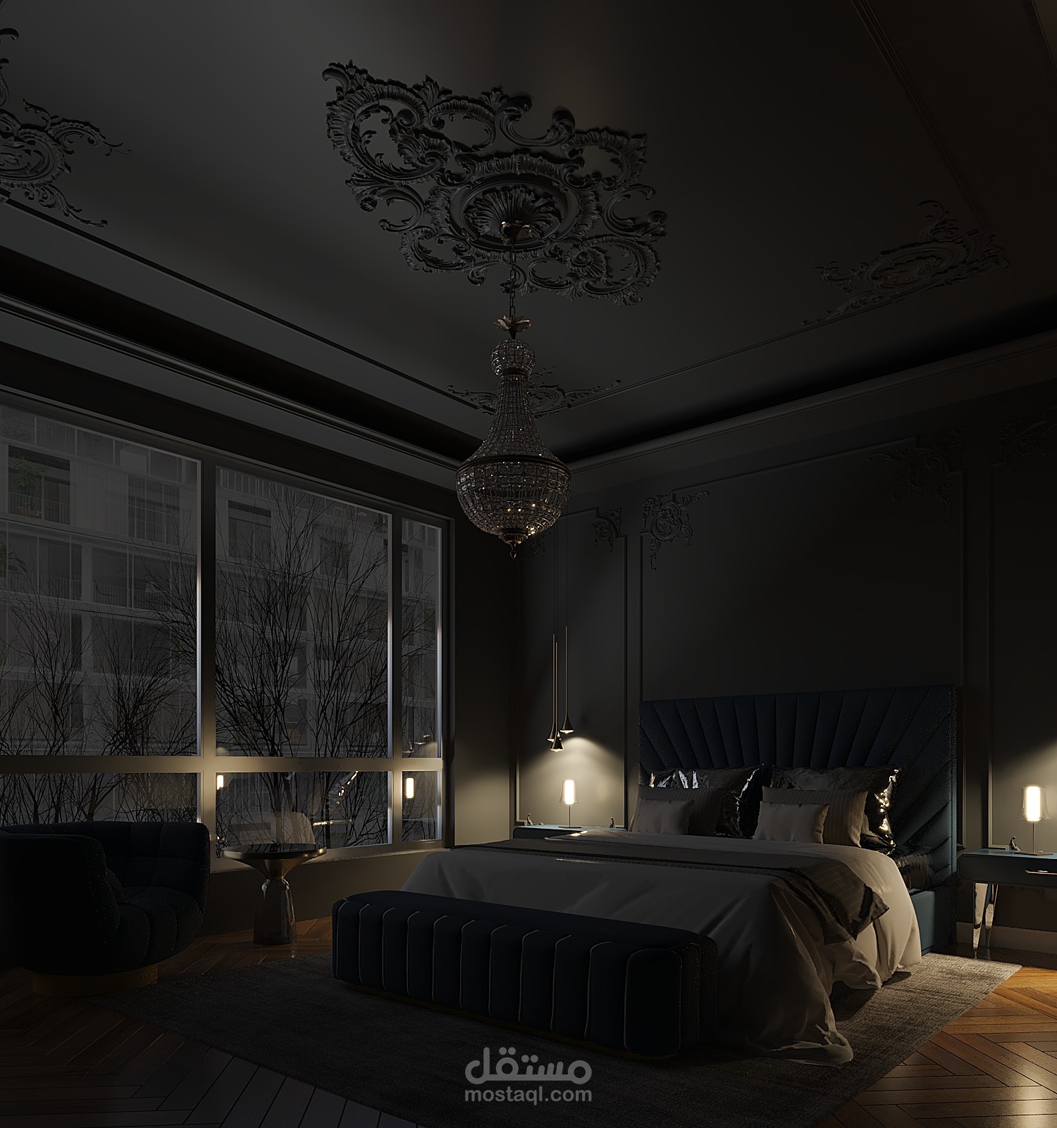 تصميم غرفة نوم على الطراز الكلاسيكي الفاخر