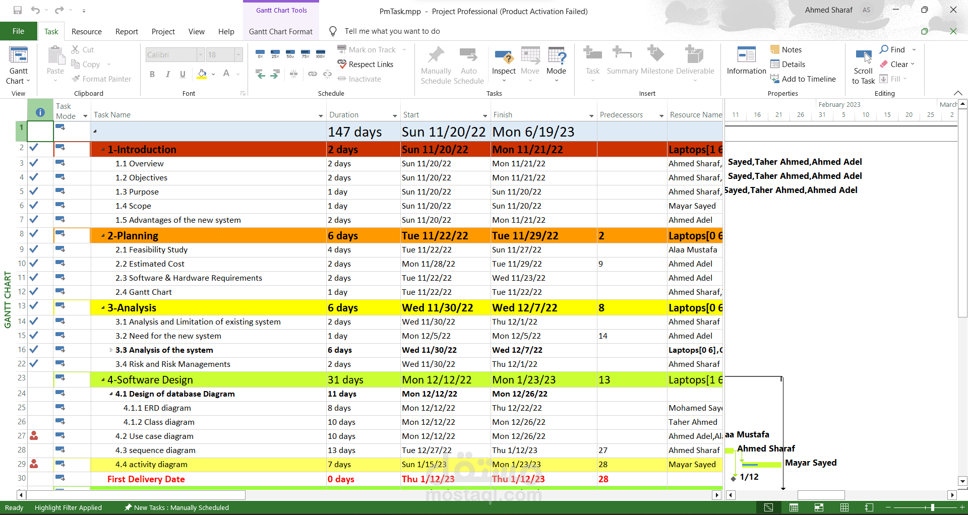 هذا العمل يتضمن خطه مستقبليه لاداره مشروع برمجي منقسمه الي التخطيط والتصميم والتكلفه والعطل الرسميه وافراد المشروع ......