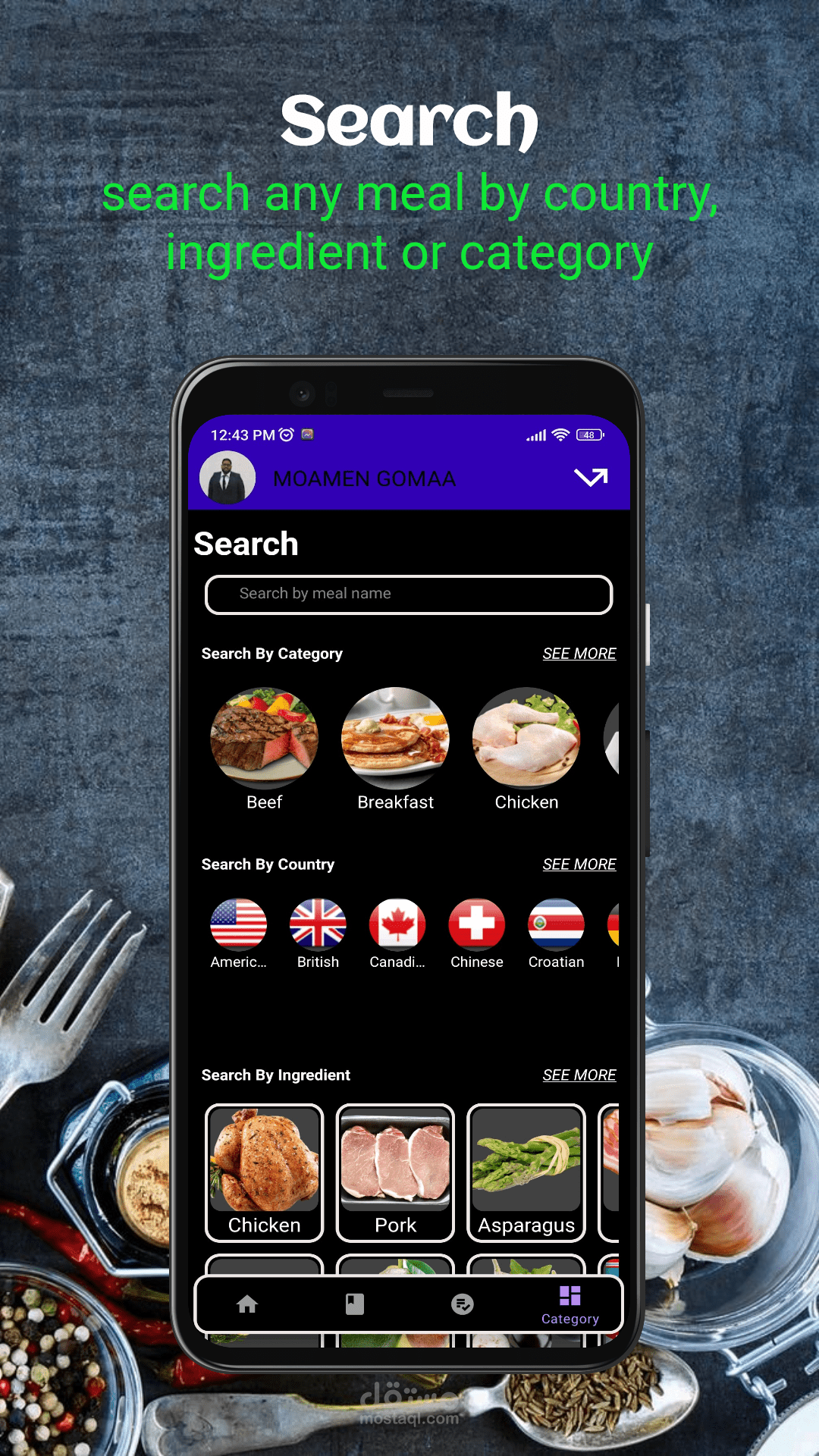 تم تصميم هذا التطبيق لمساعدة المستخدمين في إدارة نظامهم الغذائي من خلال تزويدهم بوصول إلى مجموعة واسعة من الخيارات الغذائية من مختلف البلدان. من خلال التطبيق، يمكن للمستخدمين تصفح خيارات الطعام المختلفة بسهولة وتصفيتها وفقًا لمكوناتها وتصنيفاتها.