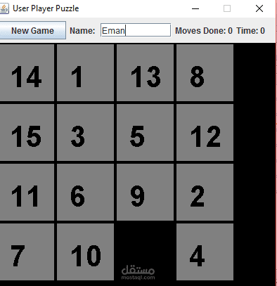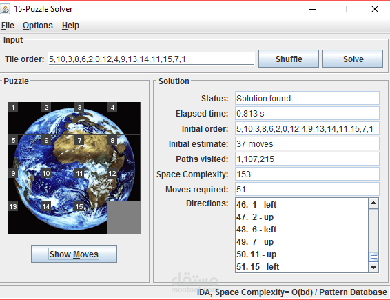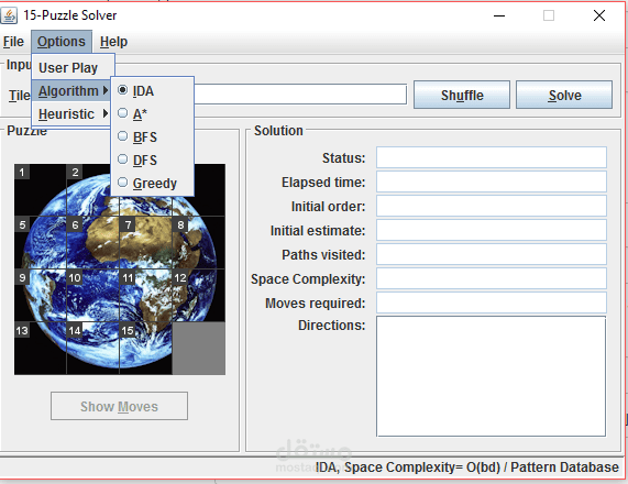 علي puzzle 15 مع تحديد الالجوزم المراد من المستخدم تنفيذه