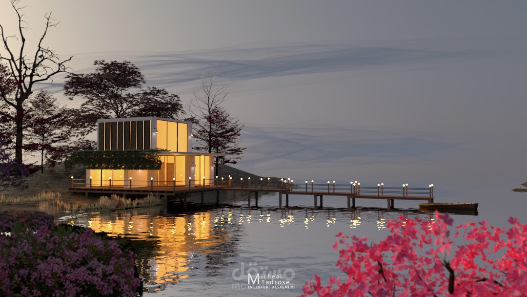 تصميم لمنزل صغير يطل على بحيرة على الطراز الحديث