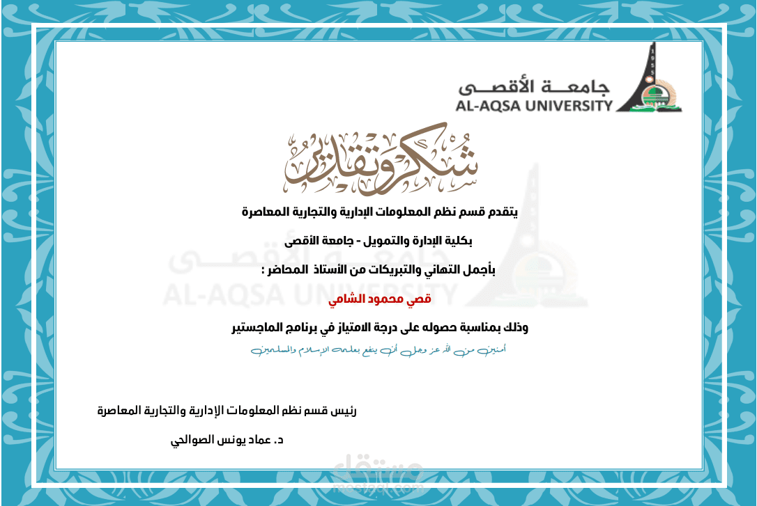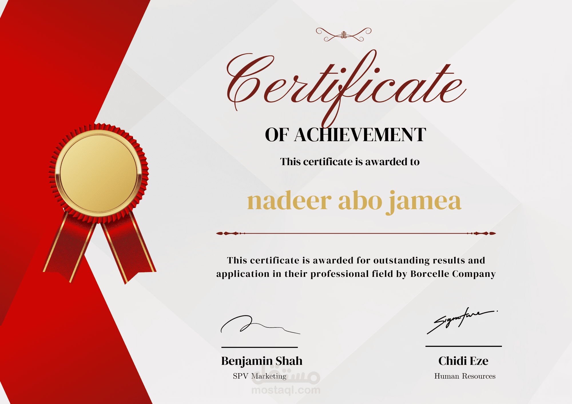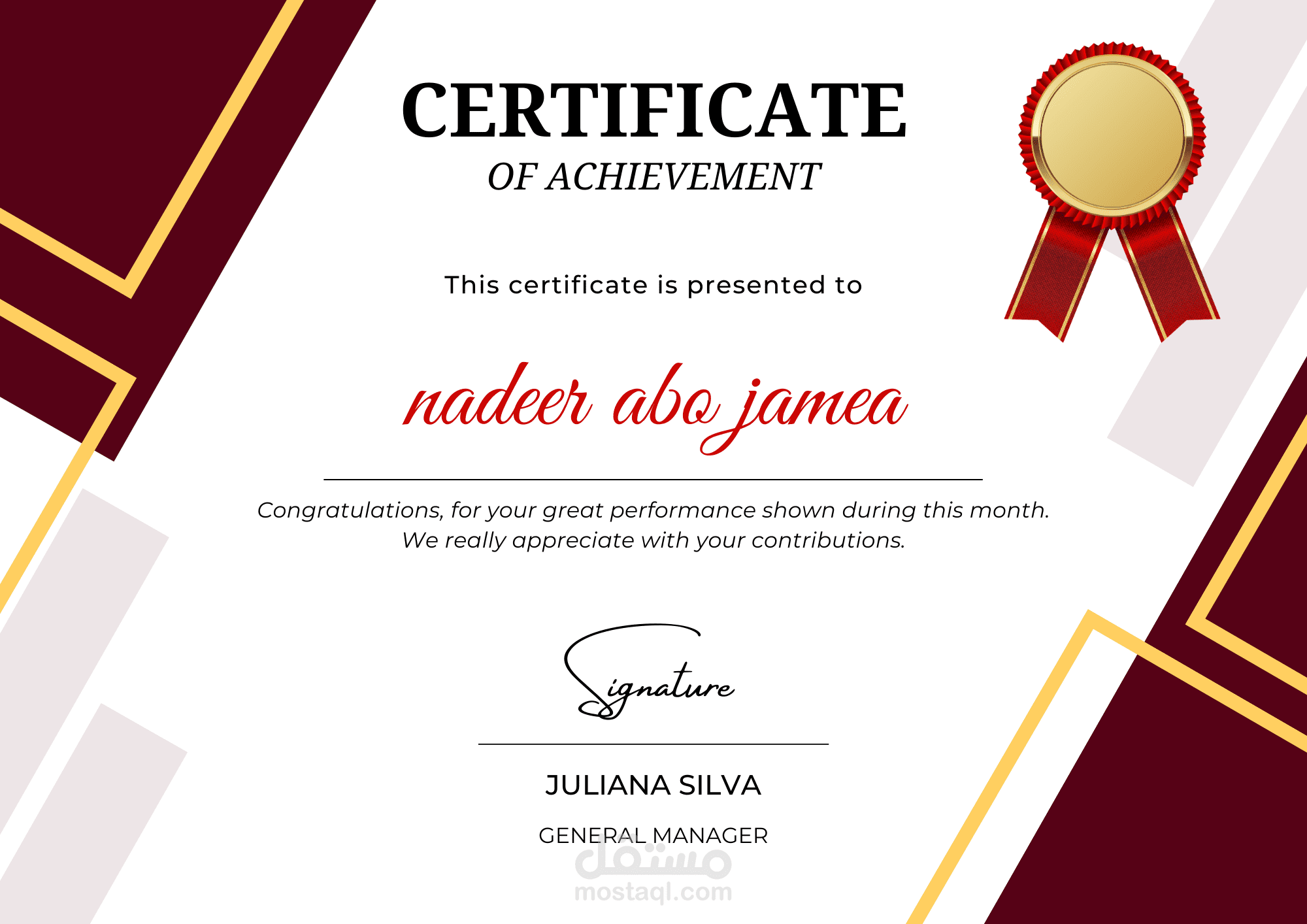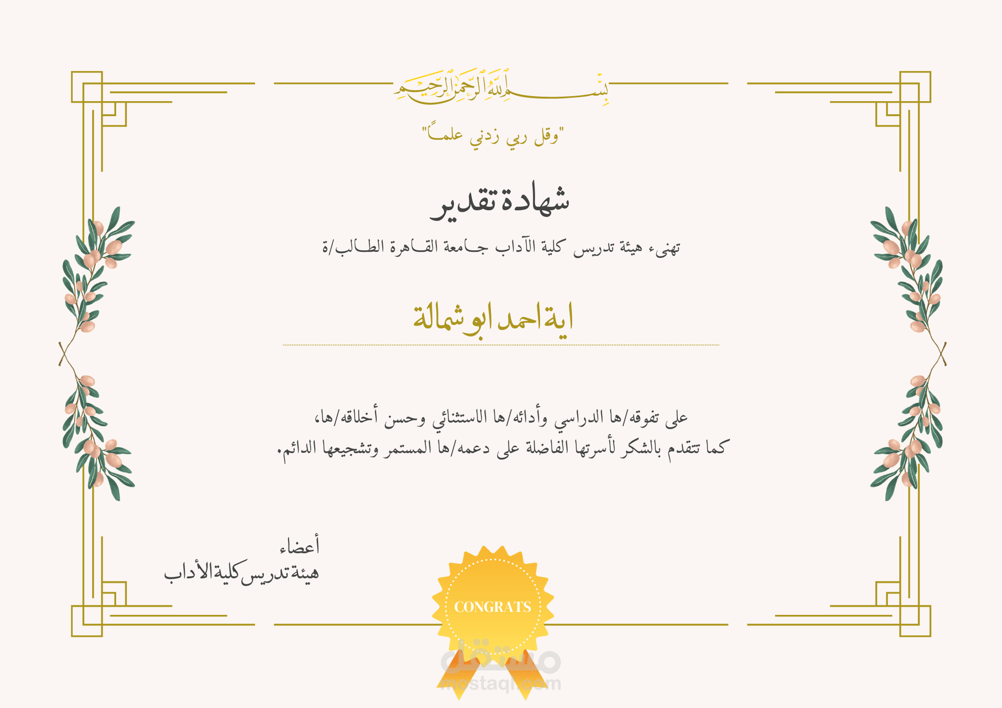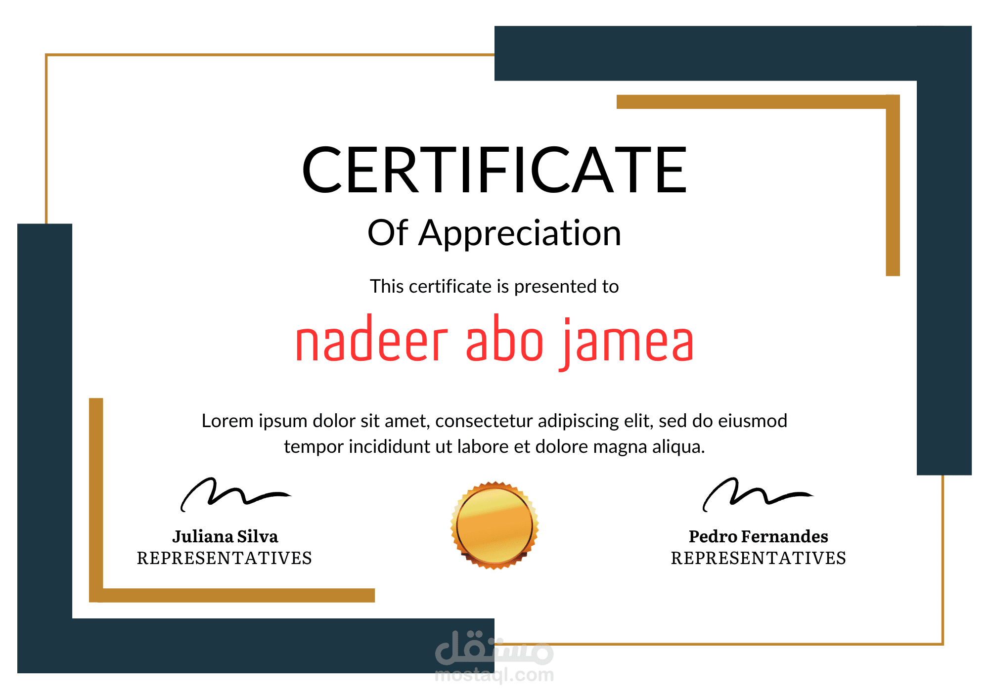 بعض من اعمالي في تصميم شهادات شكر وتقدير