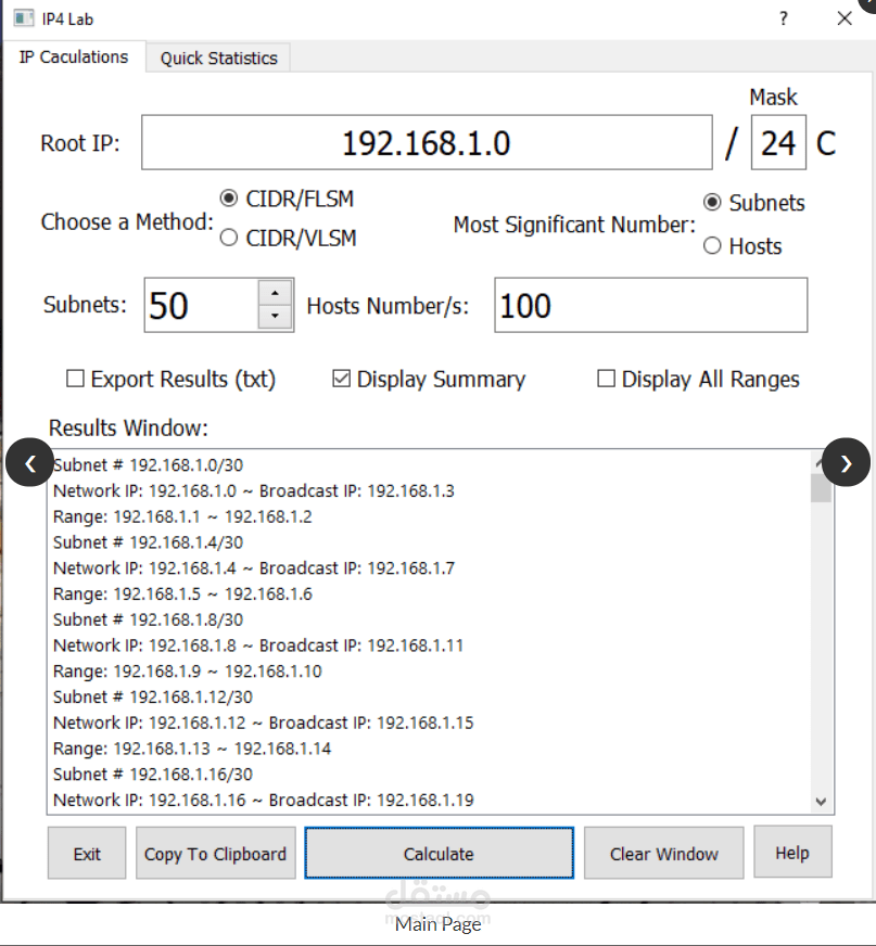 البرنامج يقوم بحسابات مدى ال ip المتاح داخل الشبكة بمعرفة الاجهزة المقترنة, أو عدد الشبكات المطلوبة, و يقوم أوتوماتيكيا بحساب اقرب عدد ثابت للشبكات أو الاجهزة داخل الشبكة.