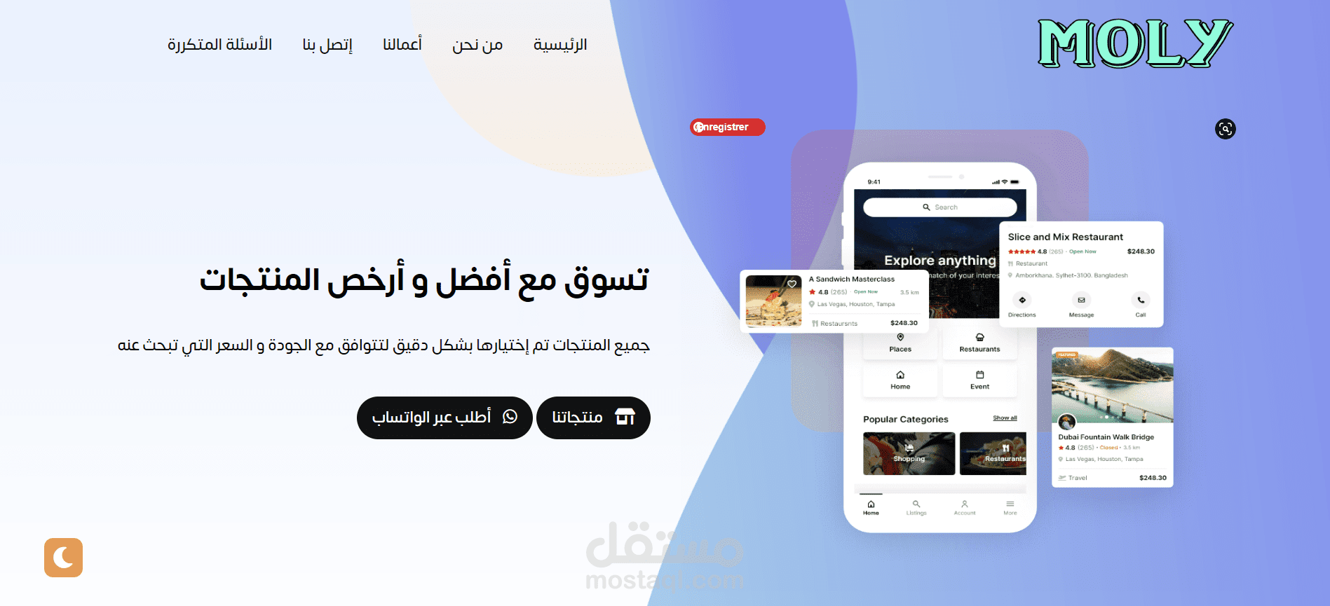 موقع إلكتروني عبارة عن صفحة هبوط لعرض المنتجات