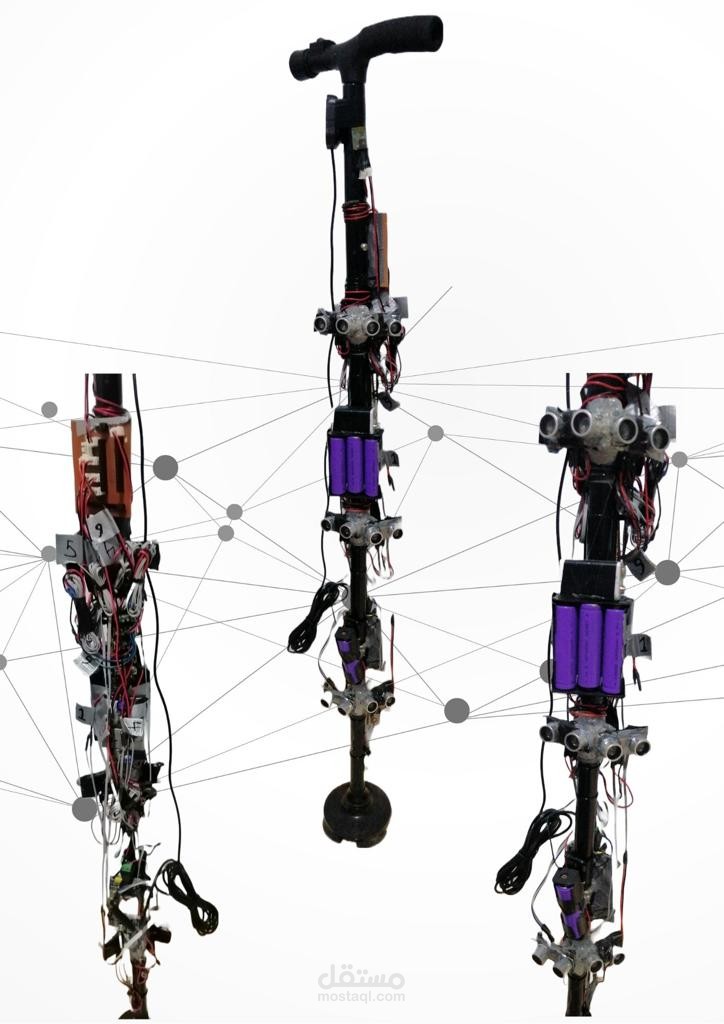 Visually impaired are sensitive to contact with anything they may encounter while performing daily activities like walking; they are also at risk of traumatic accidents and falls while walking etc., which cause them great harm. The humanitarian objective of our project is to put smart aids inside an easy-use cane. The purpose of the cane is to help the visually impaired overcome obstacles and inform the visually impaired parents of its location and the existence of an emergency that the visually impaired face in case something happens. Our project used ultrasonic sensors to measure distance. Arduino nano as a microcontroller for data processing. GSM module as a wireless communication protocol. A GPS life tracking system to track the visually impaired. Converter for controlling the shape of electricity. Charging circuit to power the cane devices. We integrated the devices with a PCP chip. Bluetooth module to connect the cane to the mobile application. The details will be stored in Google Firebase, and the data will be displayed using a mobile application. In general, the system sends alerts to the blind about the existence of obstacles, sends the position of the visually impaired to his parents, and informs the parents that there is a problem facing the visually impaired. As a result, the visually impaired can walk safely and perform their daily activities easily, and their parents can check on them without any problems.