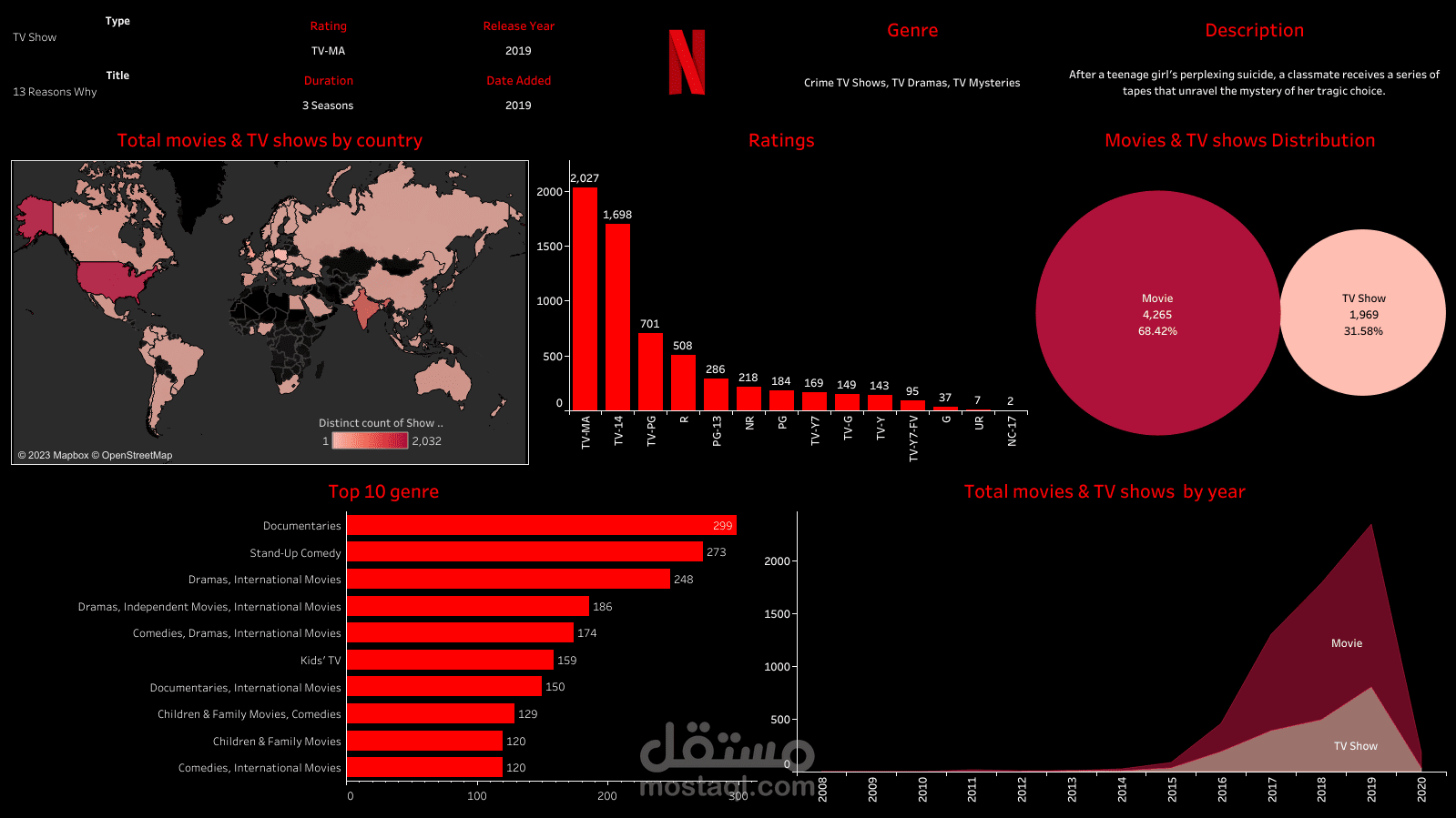 A full Dynamic interactive Dashboard; Analysis Case-Study from a Kaggle data-set "Netflix movies and tv-shows", done using only Tableau and fully operated in "Tableau-public" .