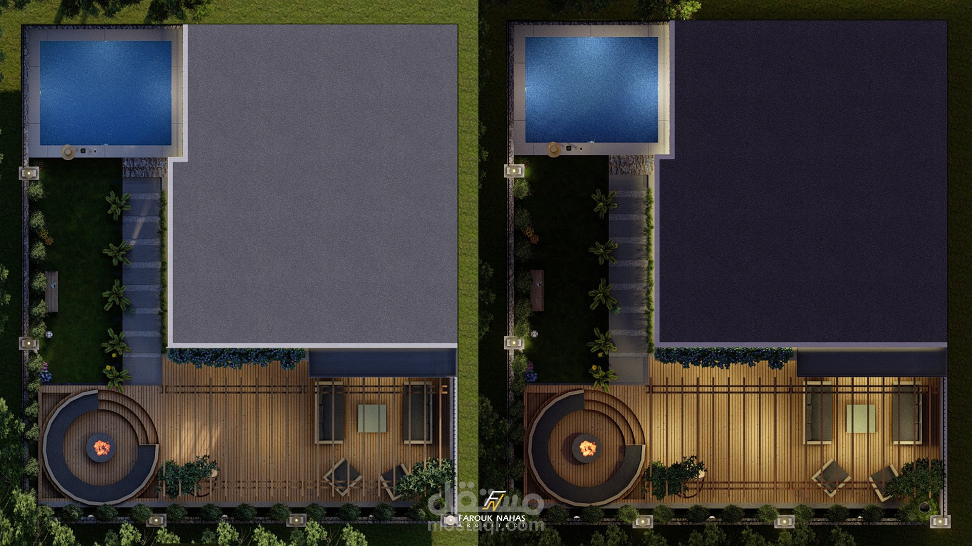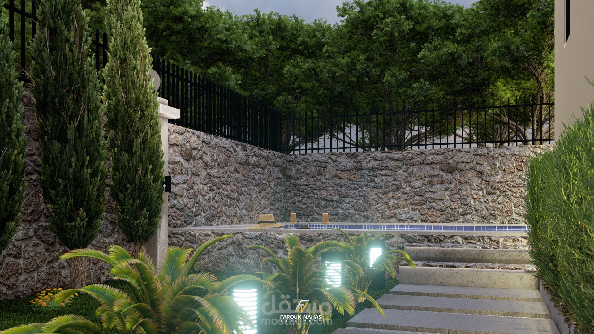 في هذا المشروع, تم اعادة تصميم الاندسكيب للفيلا بطريقة مودرن وبسيطة حسب رغبة العميل. تم استغلال كامل المساحة من اجل انشاء مسبح سباحة - حديقة للاولاد - مجلس - باربيكيو زون.
