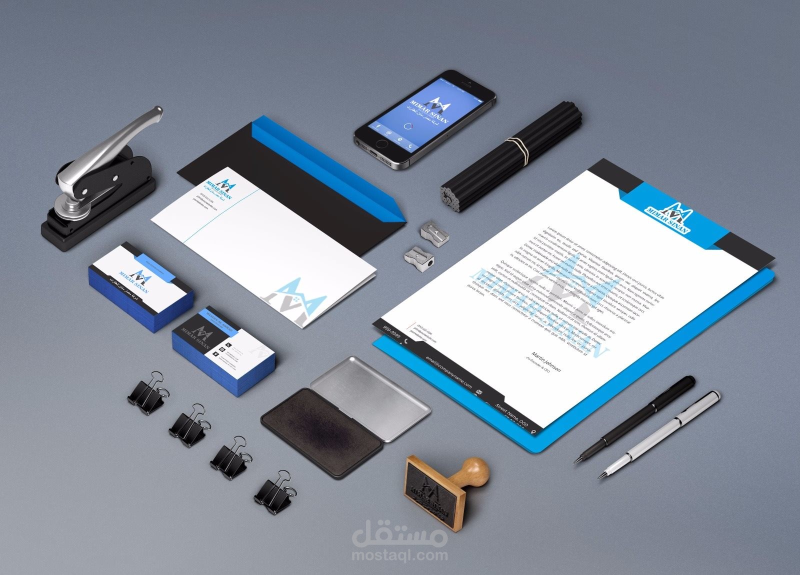 معمار سنان للخدمات العقارية شعار + ادوات مكتبية
