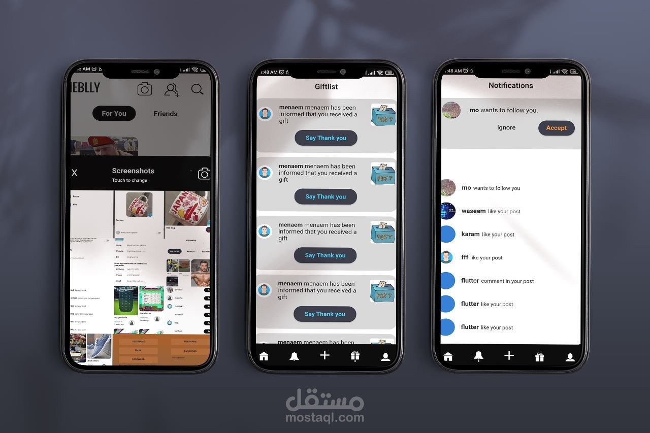 • تطبيق عبارة عن سوشيال يستخدم فيه لمشاركة منشورات واضافة الاصدقاء وبامكانك ايضا ارسال هدايا لكل صديق وعمل اضافة لمنشورات الصديق ويتيح لك ايضا حظر الصديق وحذف المنشور والبحث عن المنشور وايضا تعديل على الملف الشخصي الخاص بك ويتيح لك الكتير من المميزات .