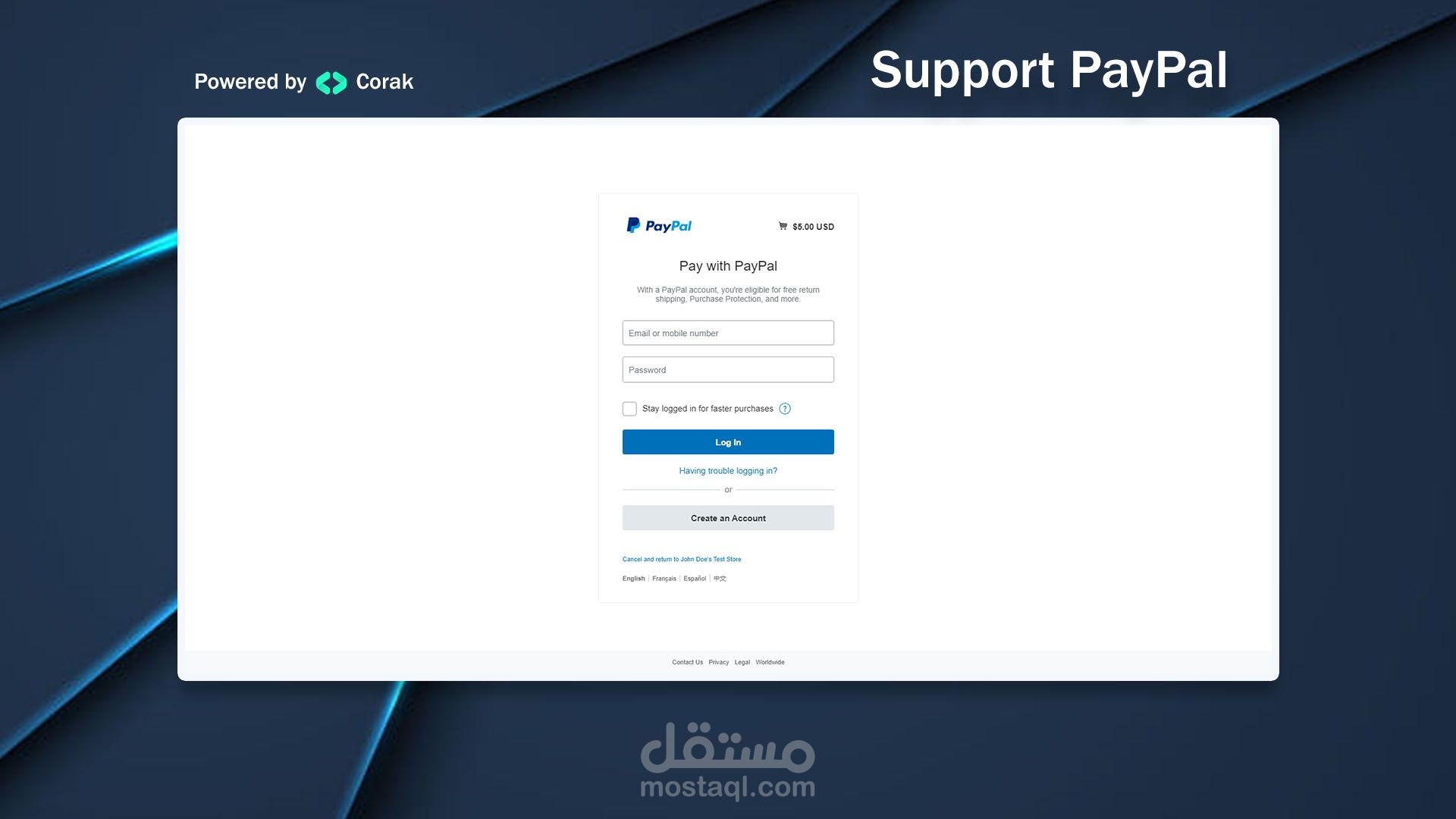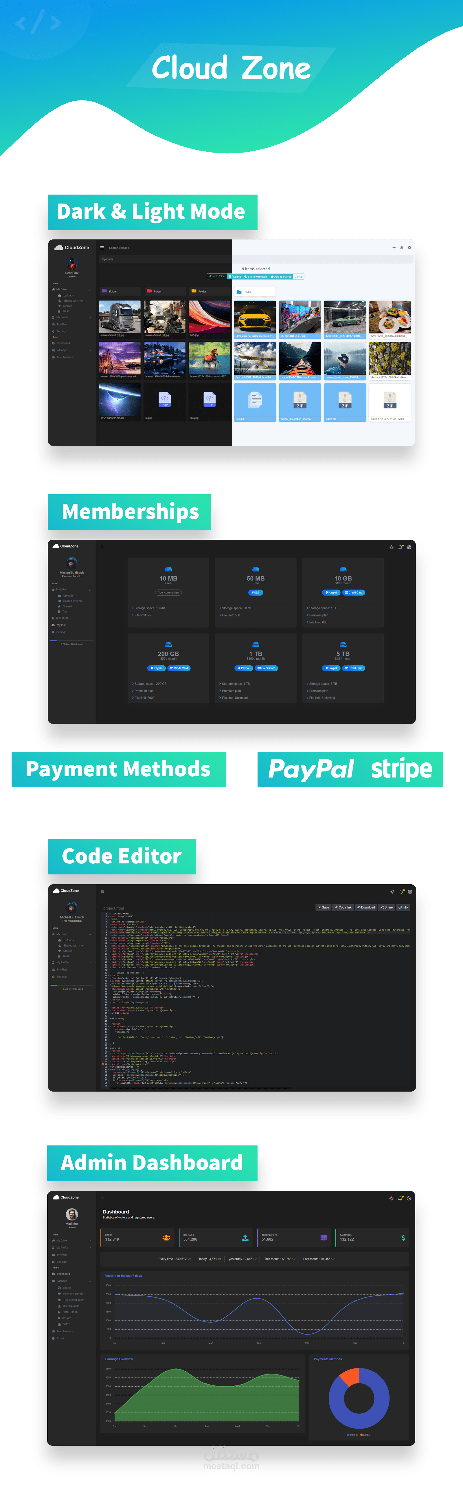 Payment Gateways are Paypal and Stripe