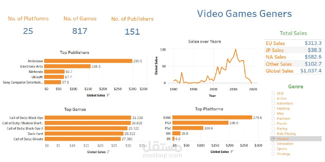 هذه ال dashboard قمت بتصميمها باستخدام برنامج Tableau لعرض المبيعات الخاصة بال Video Games