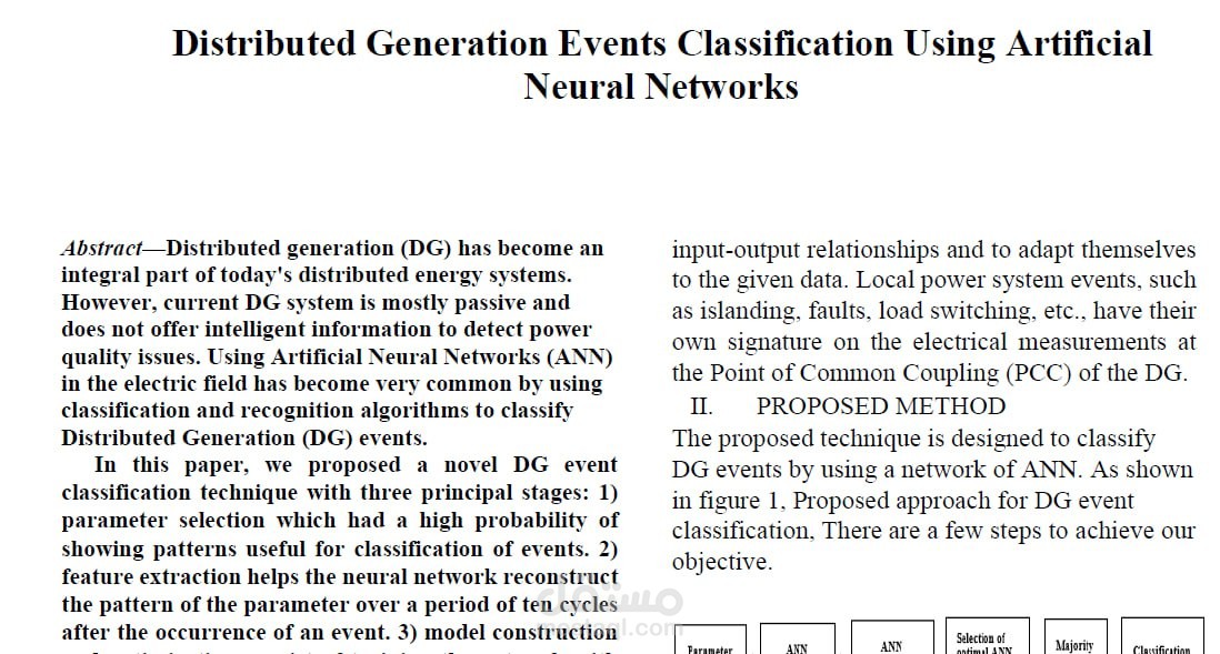 تم كتابة مقالة علمية للنشر في المجلات العلمية محتواها دور الشبكات العصبونية Artificial Neural Network في distributed generation events classification