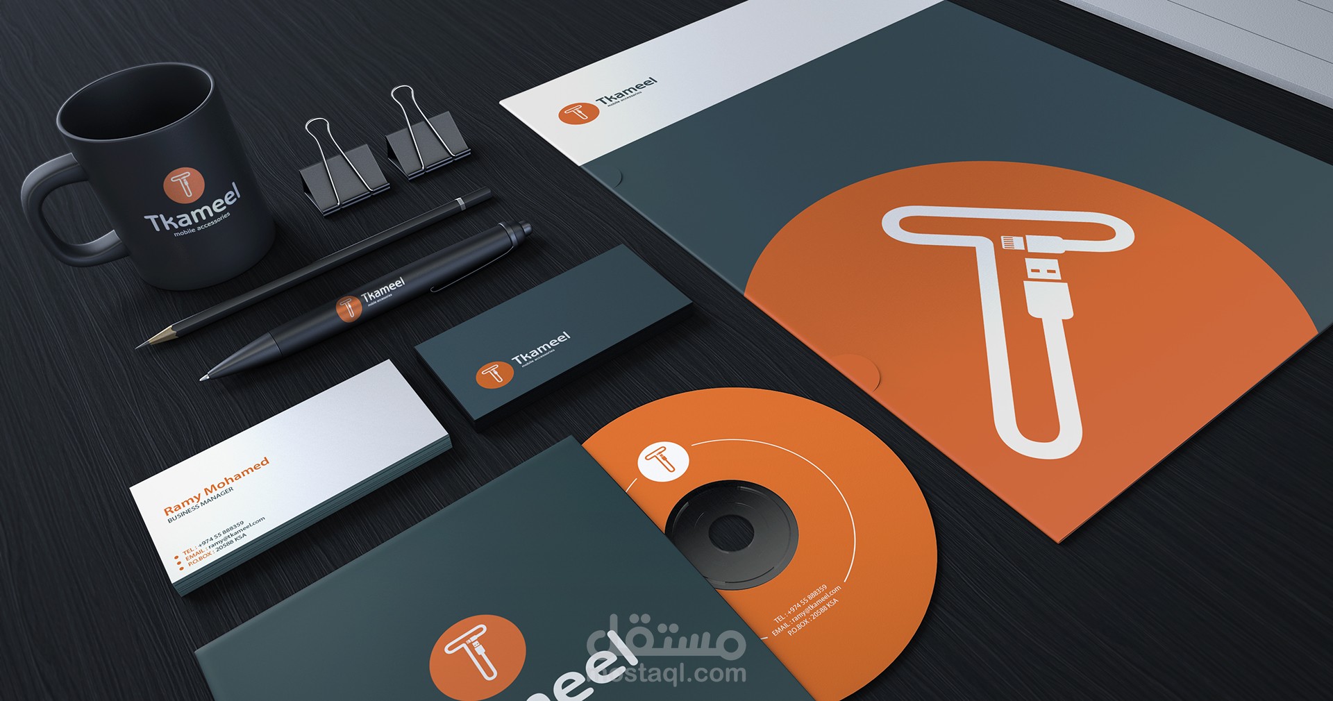 Tkameel هو متجر جديد يبيع إكسسوارات الهواتف المحمولة في المملكة العربية السعودية ، وصاحبه صديق جيد وقد استمتعت حقًا بتصميم هذا الشعار. كانت الفكرة هي إنشاء شعار بسيط بلمسة صغيرة تبرز الفكرة قبل إبراز الشعار.