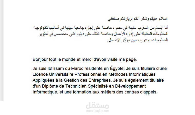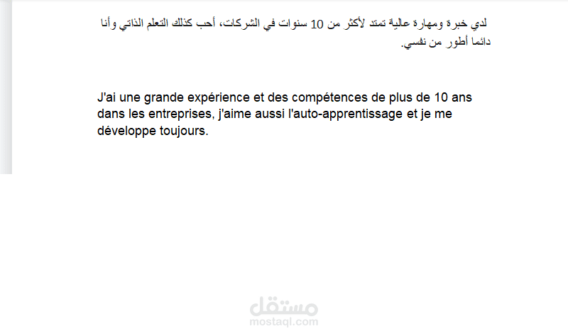 قمت بترجمة من العربية إلى الفرنسية مع الحفاظ على نقل المعنى بكل تدقيق ومراعاة قواعد اللغة الفرنسية.