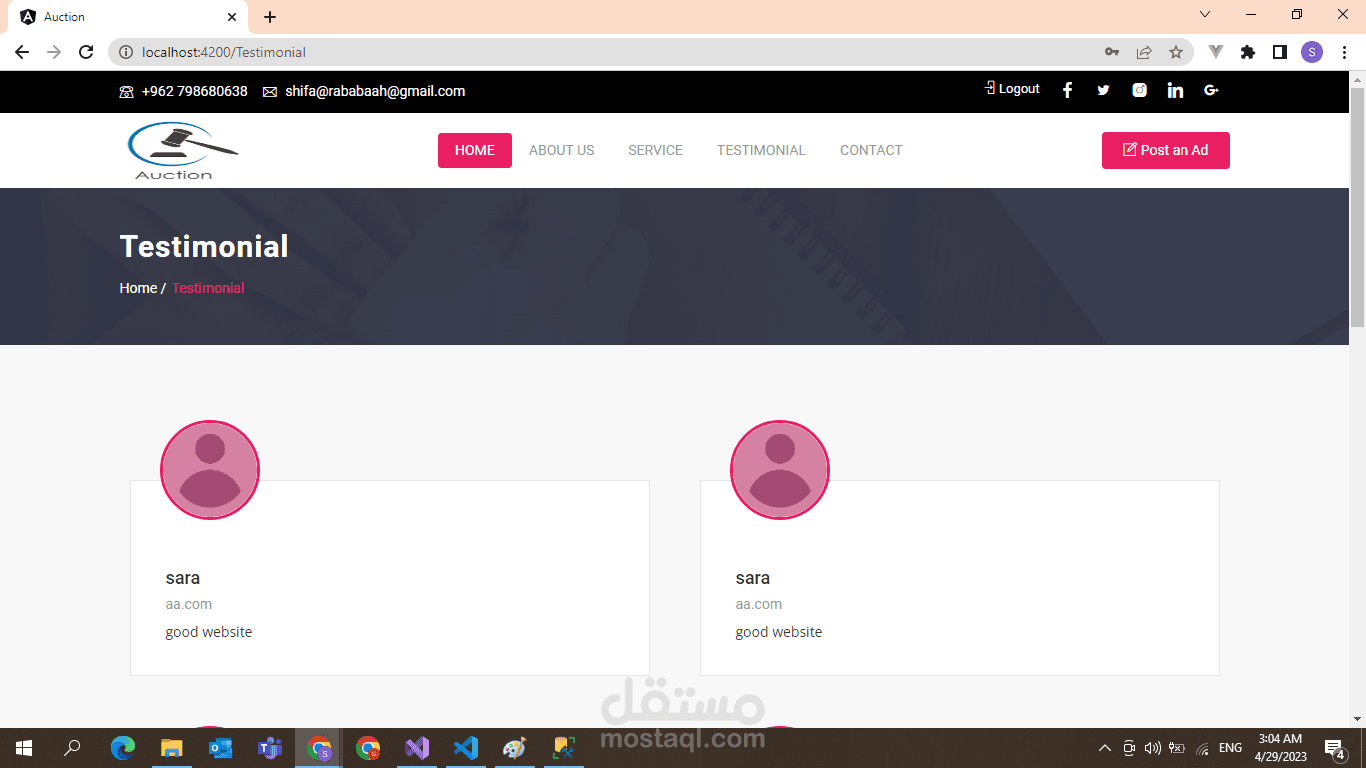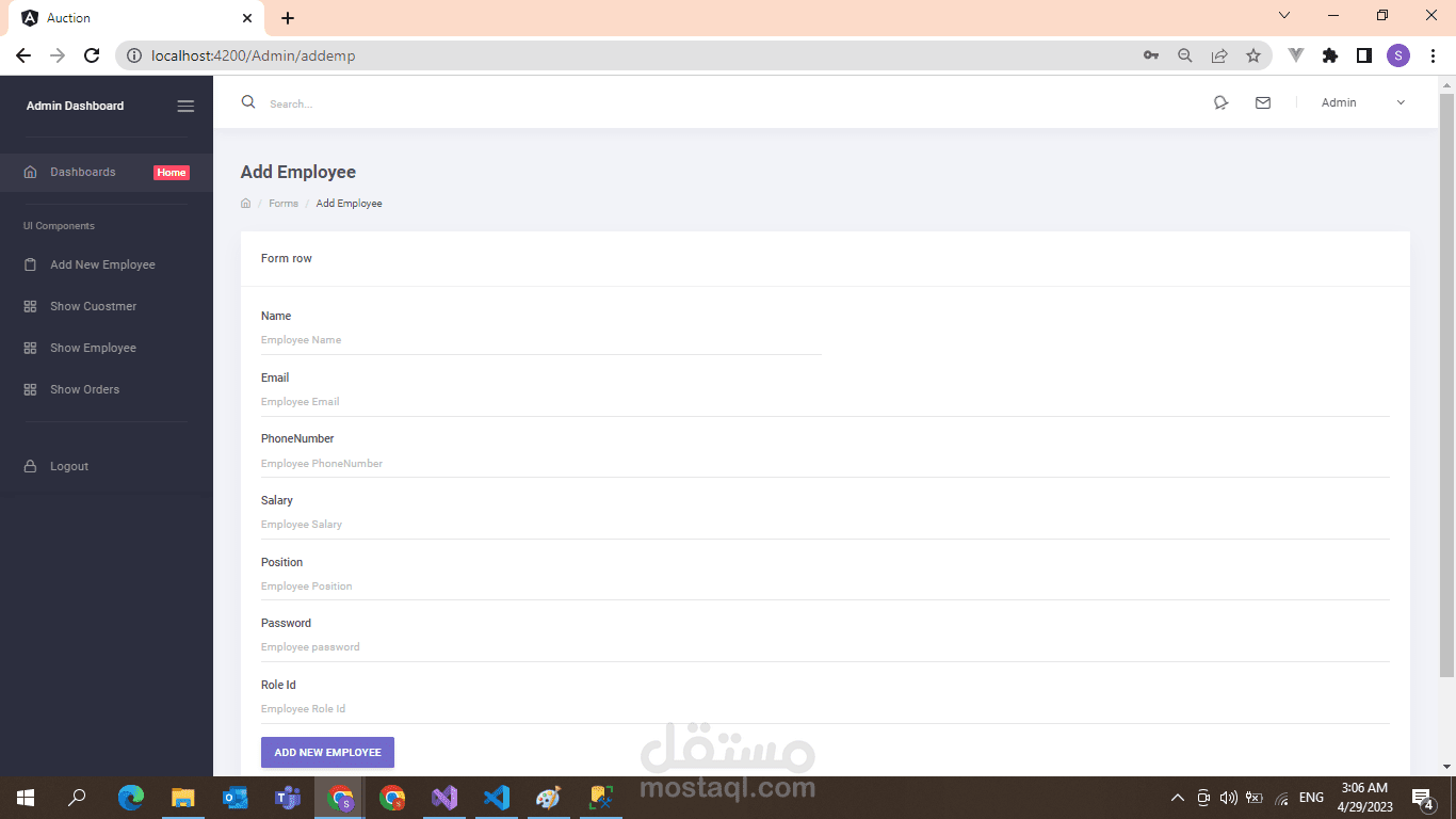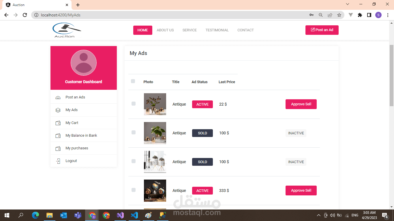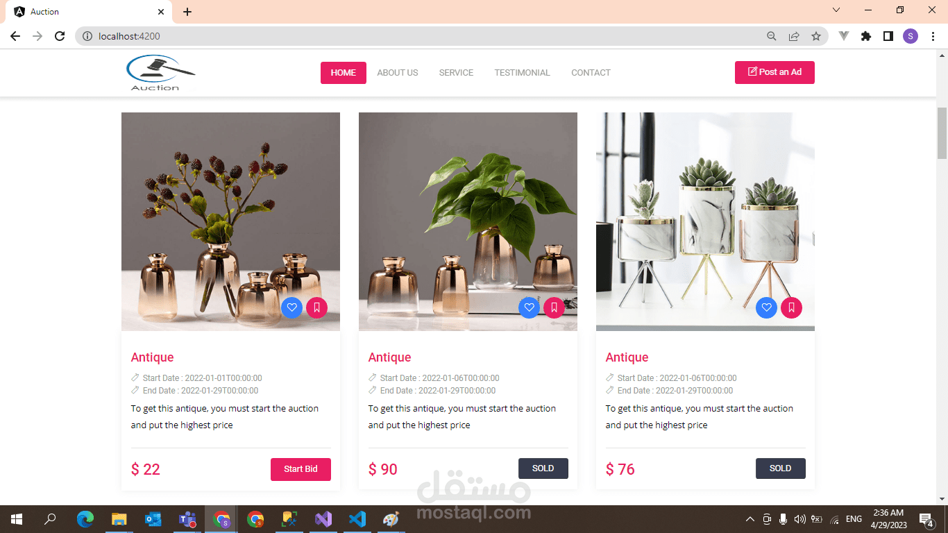 موقع متخصص في عرض التحف. يمكن للمستخدمين عرض التحف الخاصة بهم وتصفح وشراء التحف الأخرى. يمكن للمستخدم عرض تحفه وبيعها بأعلى سعر. في نظامنا ، لدينا ثلاثة أنواع من المستخدمين: العملاء ، والمسؤولون ، والموظفون ، ولكل منهم واجهة تعتمد على أذوناتهم.
