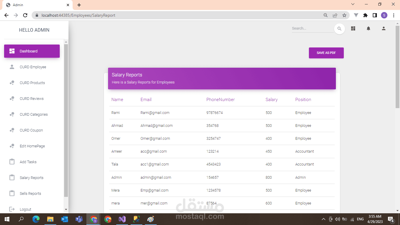 في نظامنا ، لدينا أربعة أنواع من المستخدمين: العملاء ، والمسؤولون ، والموظفون ، والمحاسبون ، ولكل منهم واجهة تعتمد على أذوناتهم.