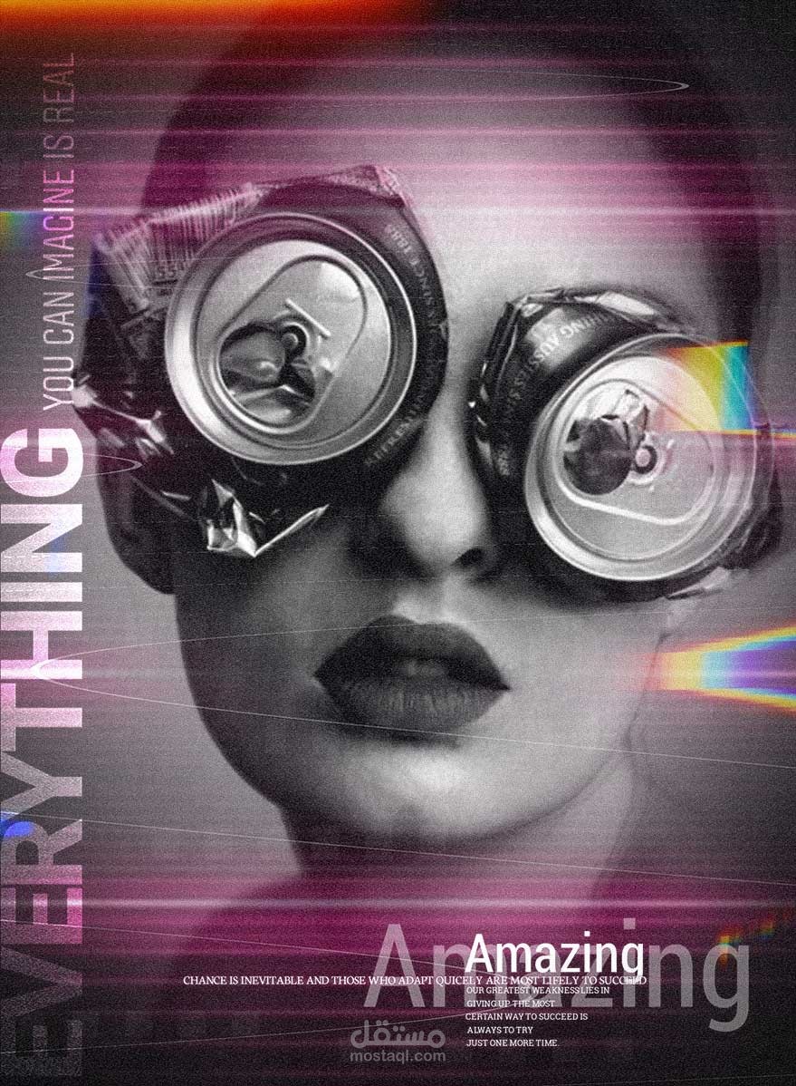 هذا العمل يعتبر عمل رسم وتعديل في صور قمت باستخدام برامج photoshop and Illustrator يسمي هذا العمل Anti Design هو تلاعب بالوان واخراج صور والوان تدمج مع بعضها