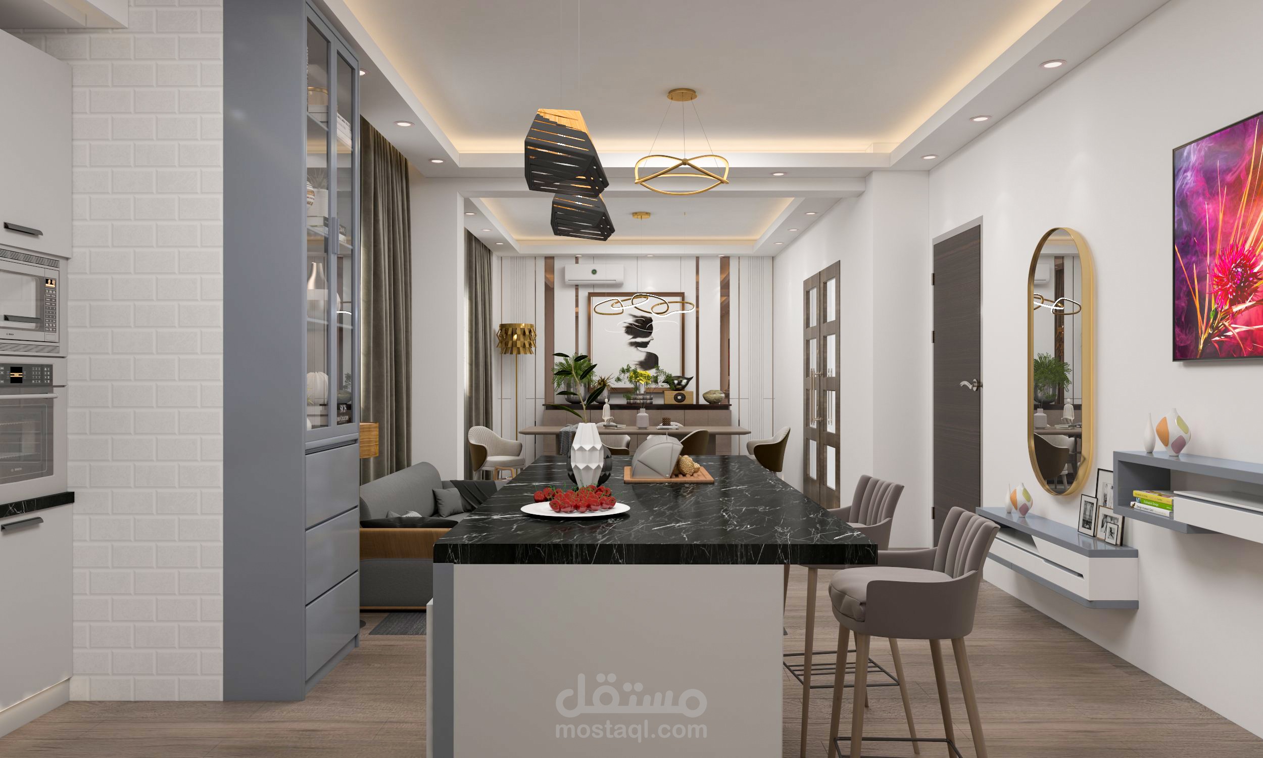 Elegant Apartment Interior Design is an interior design for an apartment that aims to showcase beauty and luxury through the use of coordinated colors, sophisticated furniture, and complementary decorations.