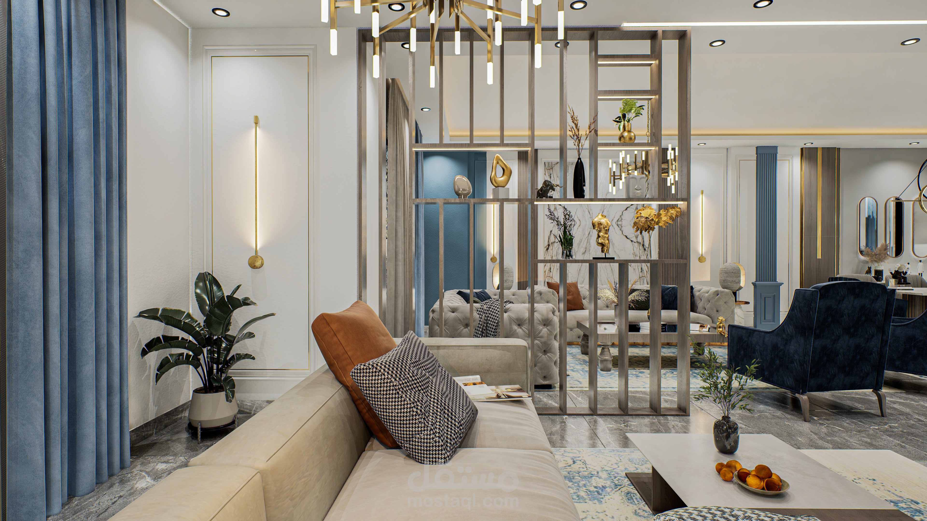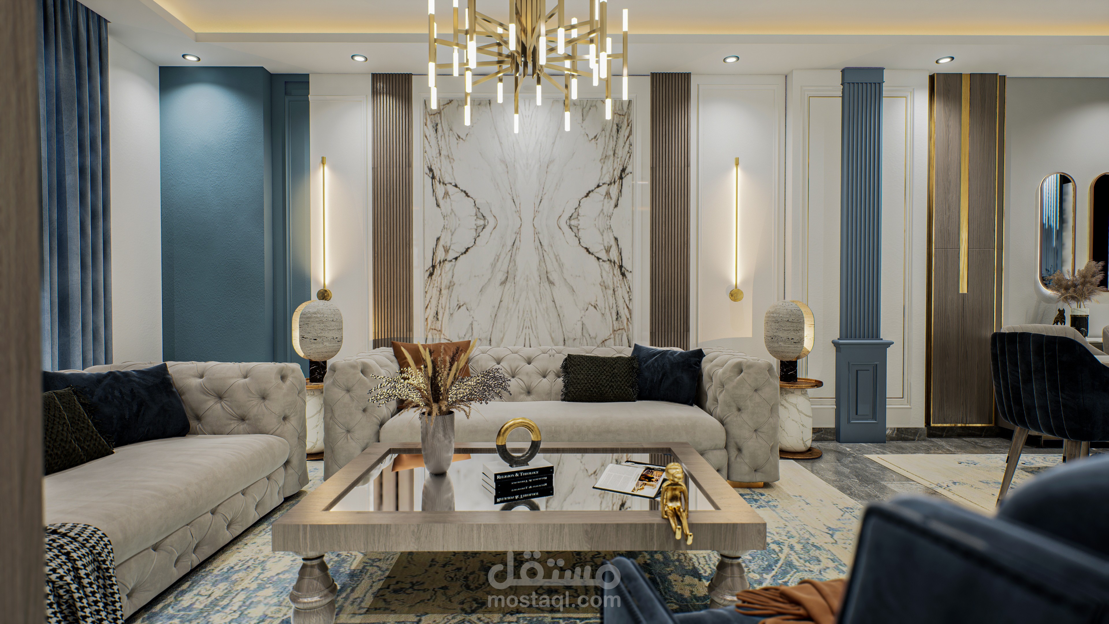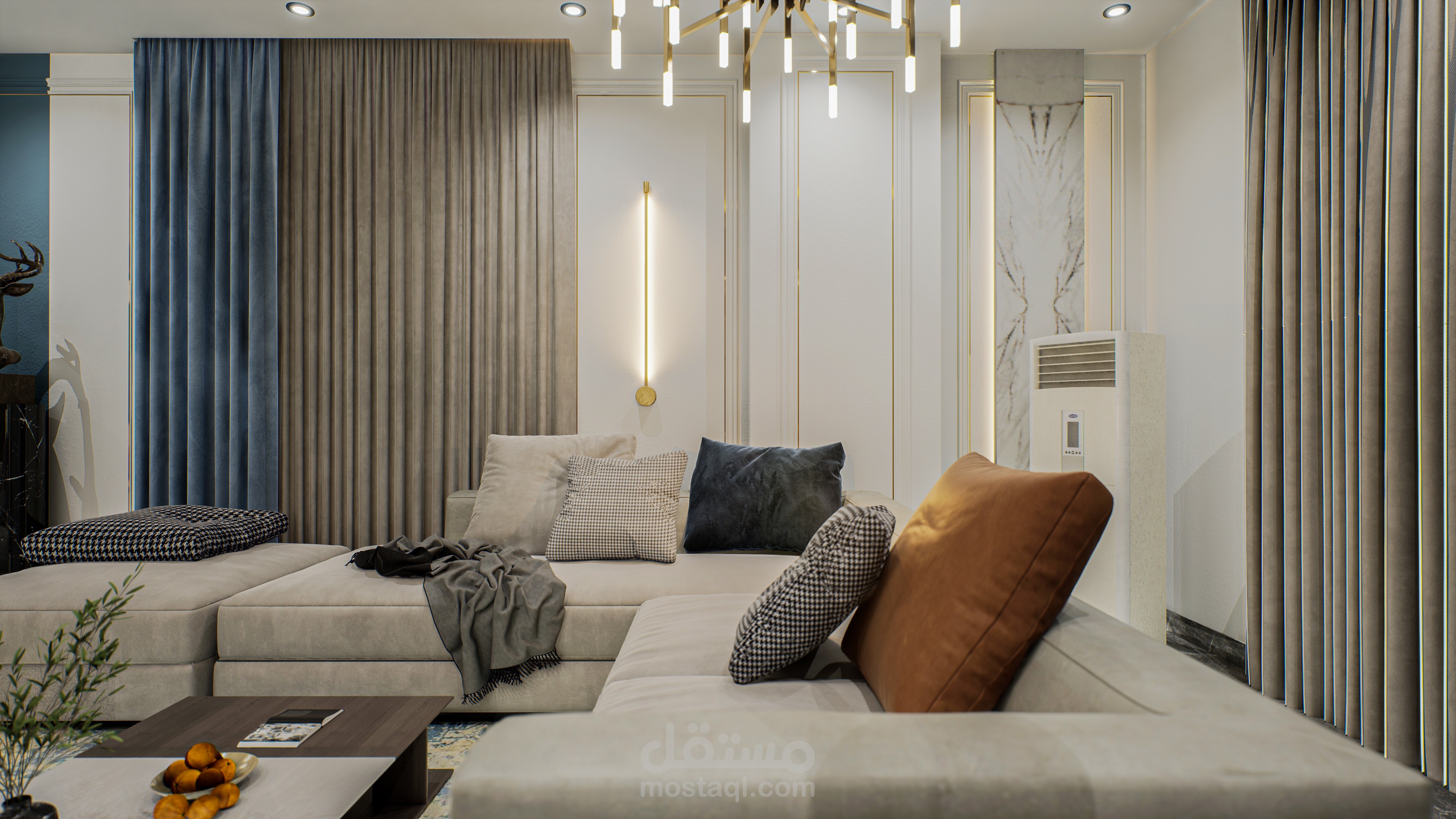 تم عمل تصميم وكان شروط التصميم ان نحتفظ ببعض ديكورات الحوائط
