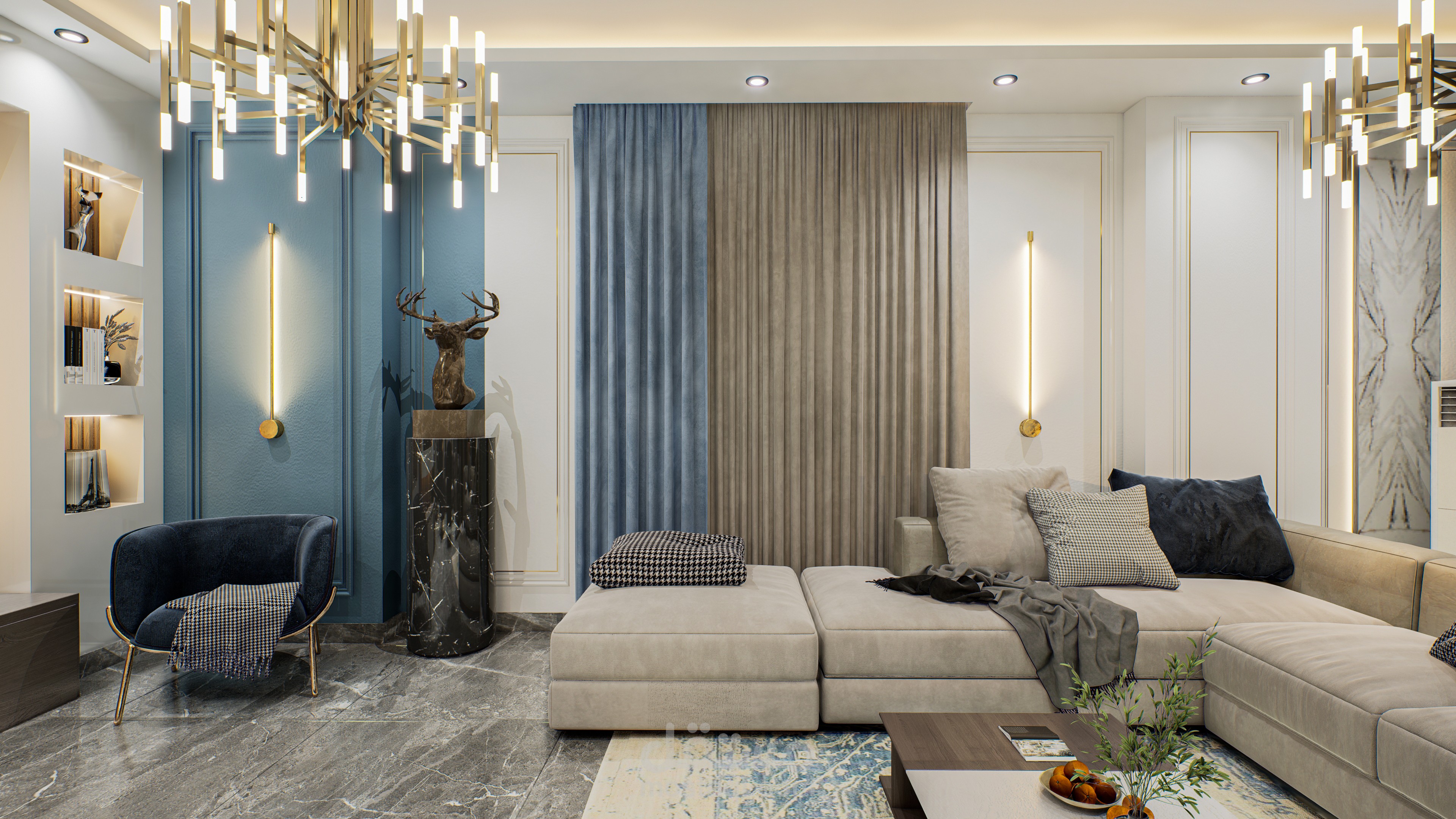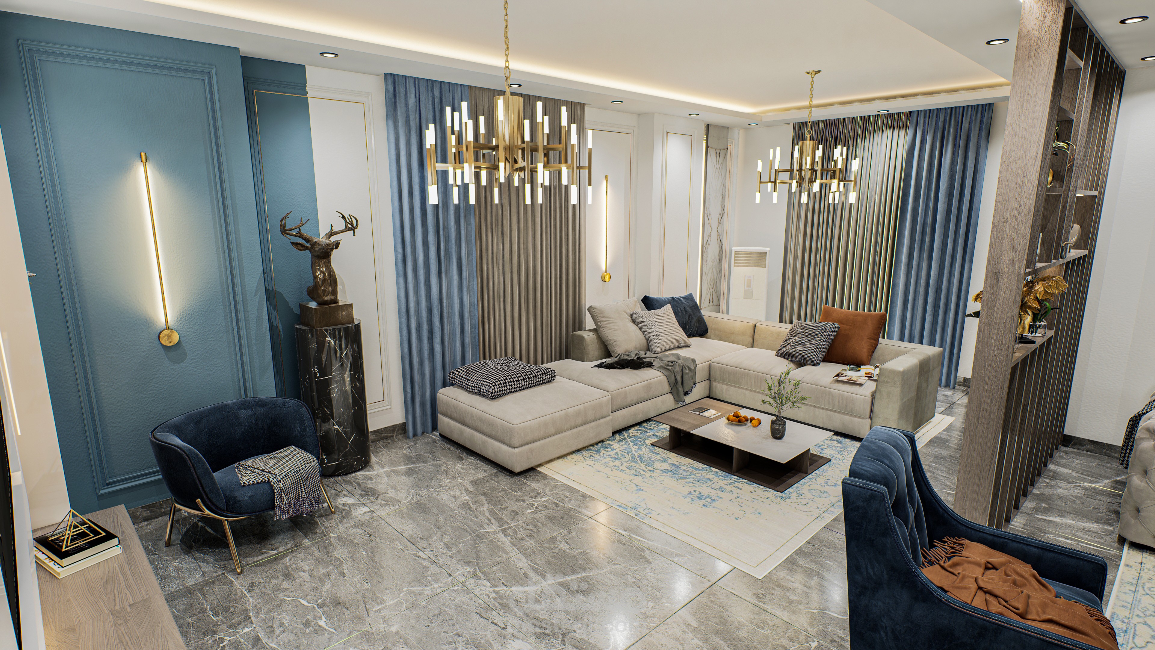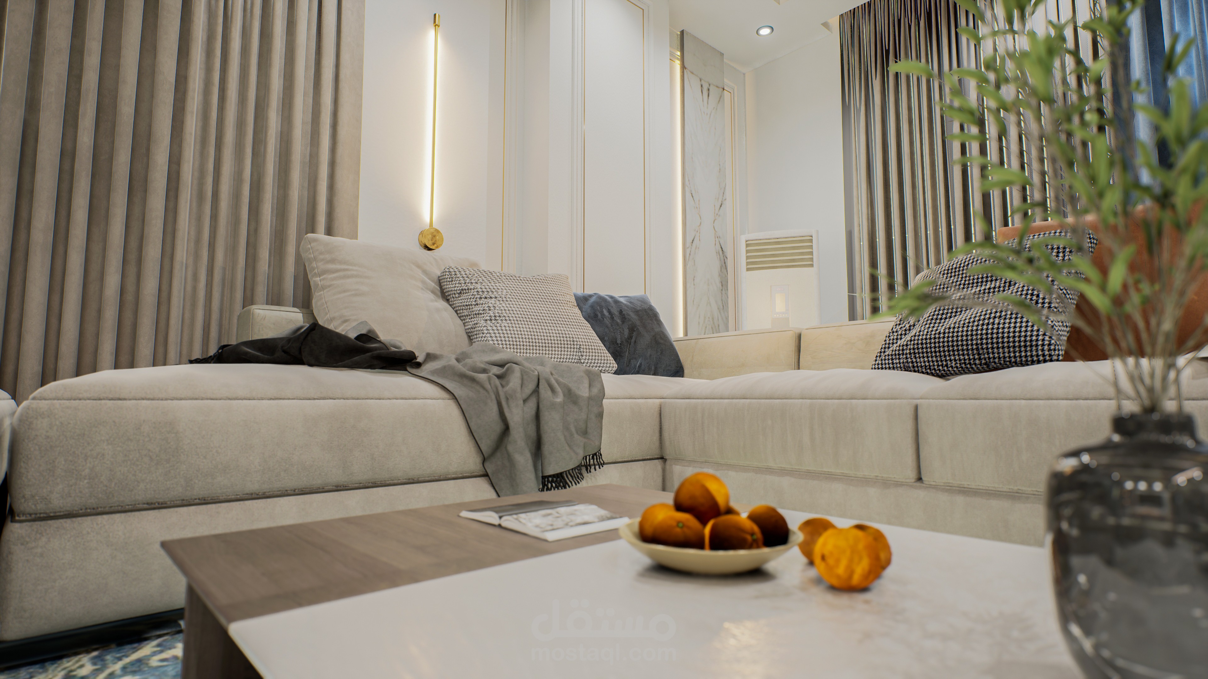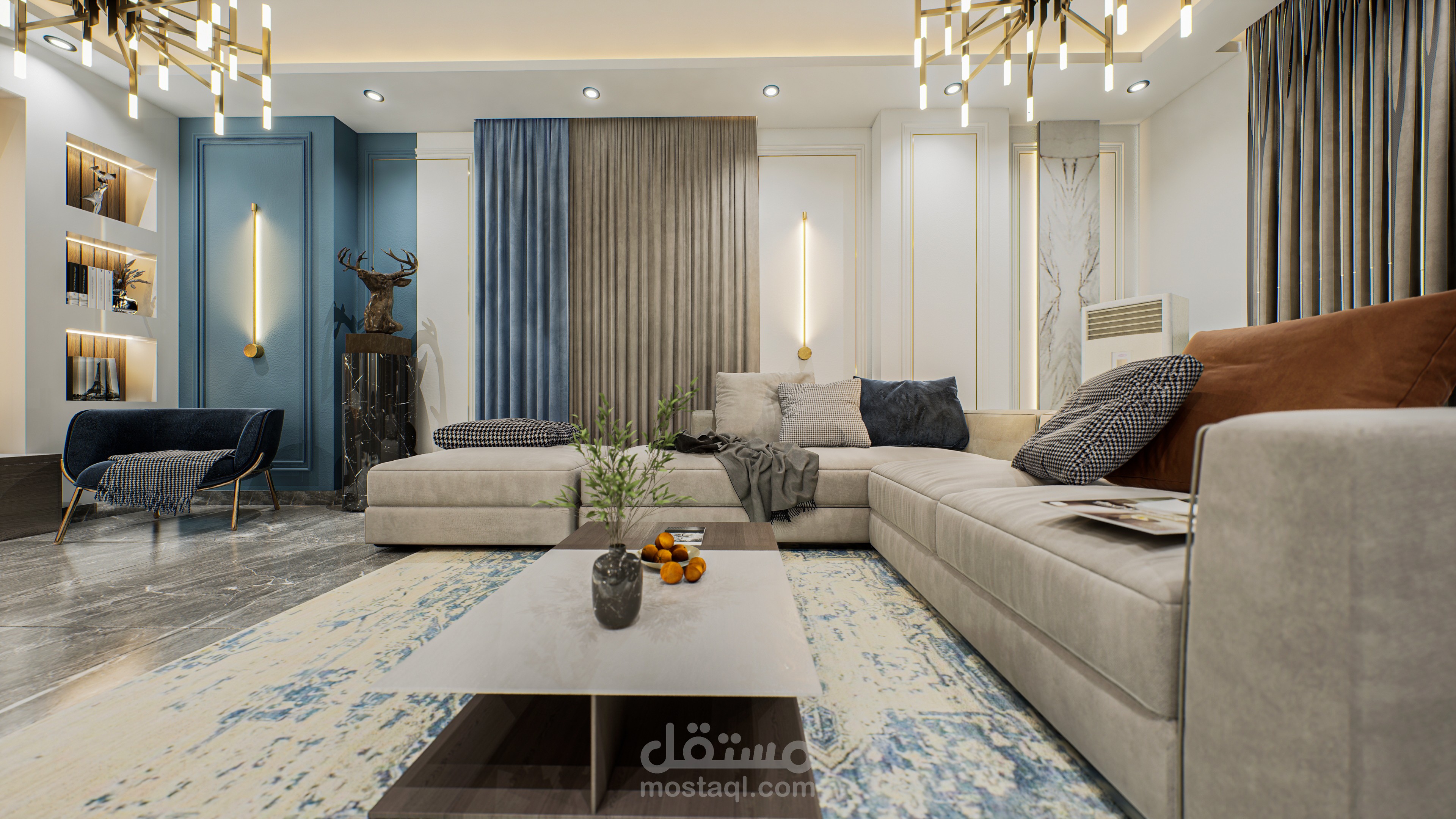 تم عمل تصميم وكان شروط التصميم ان نحتفظ ببعض ديكورات الحوائط