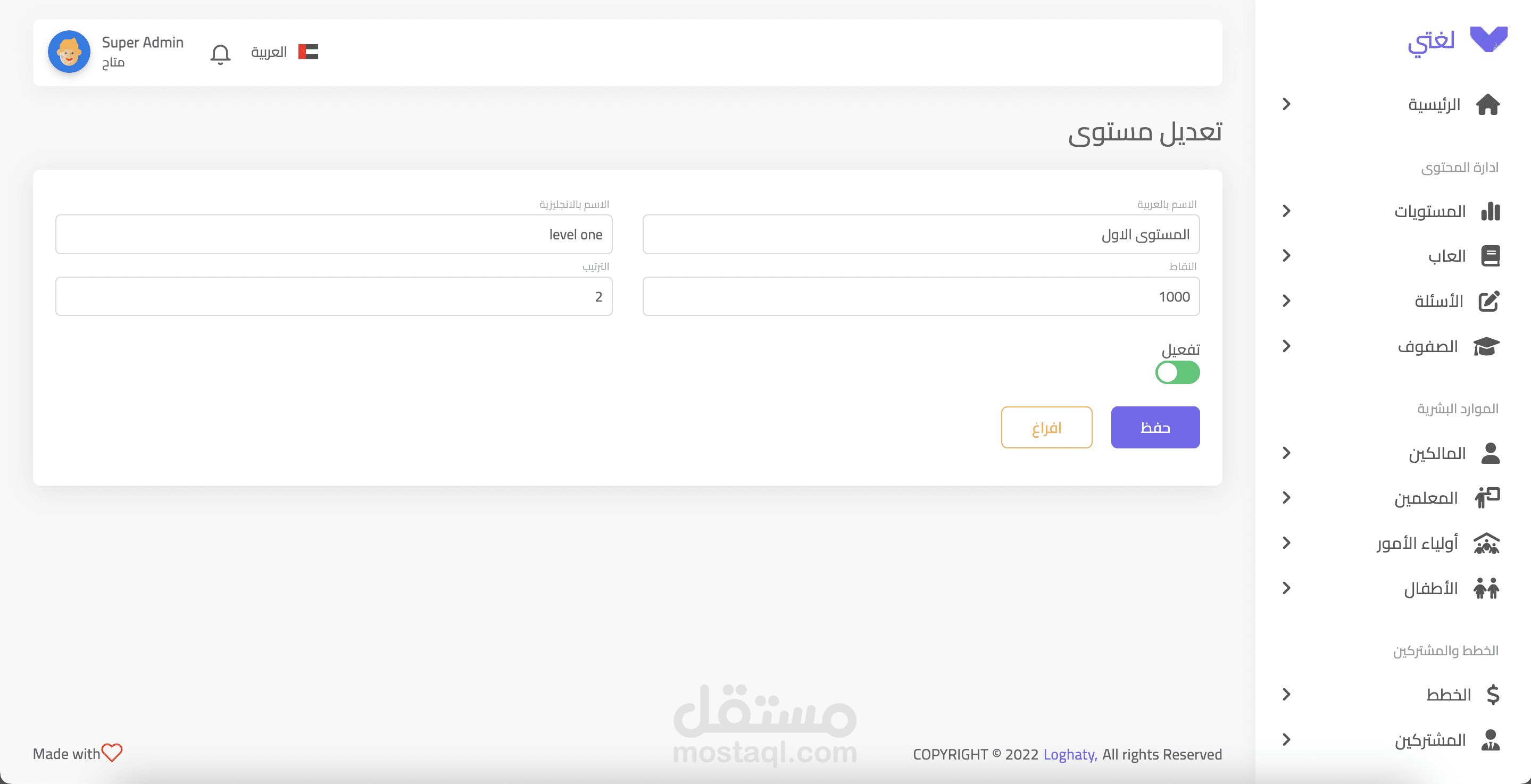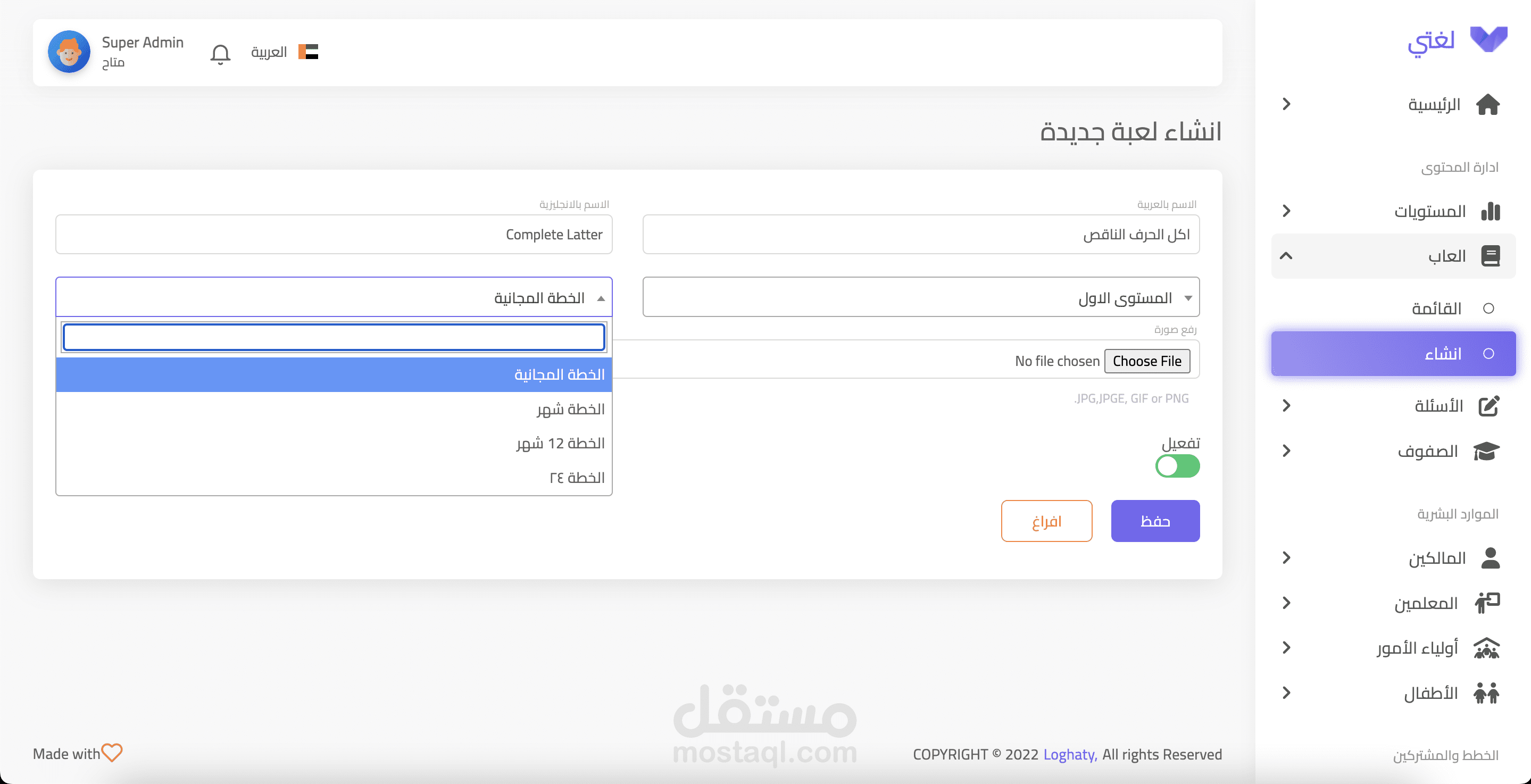 منصة لغتي هي منصة إلكترونية الهدف منها التحكم فيه تطبيق موبايل لمدرسة تعليمية,وهدف التطبيق هو تعليم الأطفال عن طريق ألعاب و متابعة الآباء لإبناءهم.